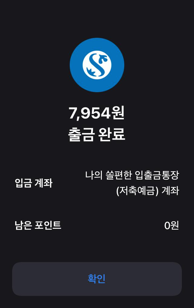 토스 포인트가 5,000원 이하일 때에는 출금 시에 수수료가 500원 든다는 점은 참고.