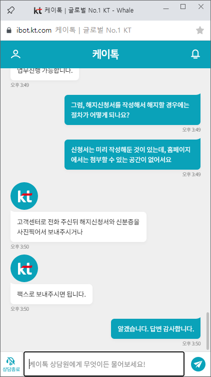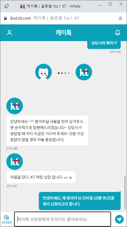 kt 선불회선은 온라인 홈페이지에서 간편(?) 해지 불가