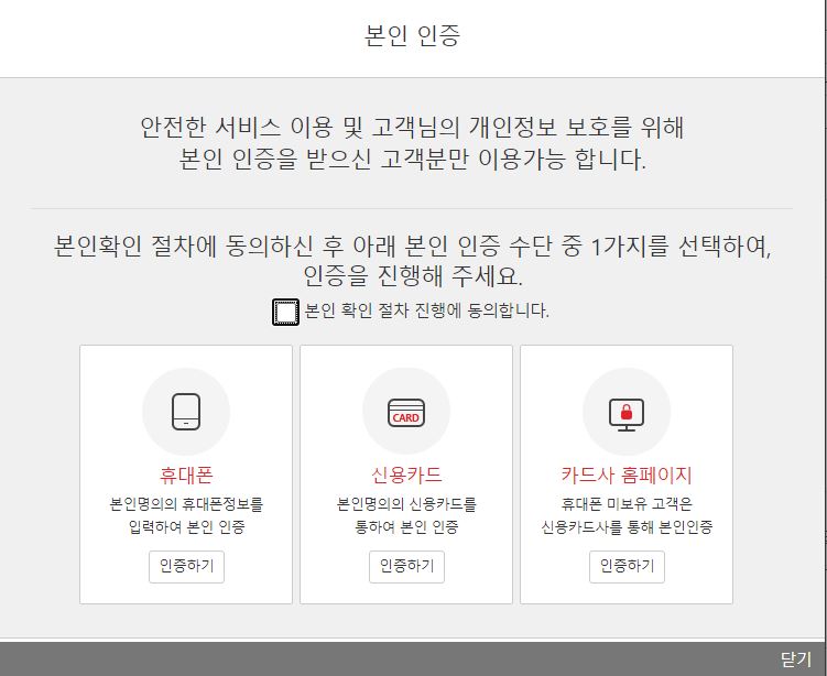 5. 필요한 내용을 작성하고, "신청하기"를 누르면 본인 인증 절차가 진행된다.