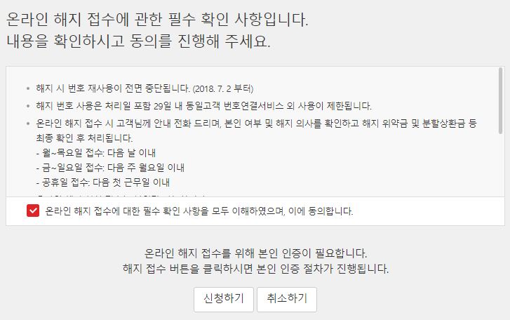 즉, 미리 해지를 신청하고 확인 전화를 받으면 되는 것이다.