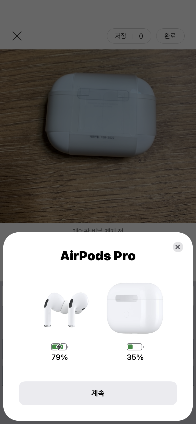 에어팟의 장점은 역시 뛰어난 호환성인데, 뚜껑을 열자마자 이렇게 환영해준다.