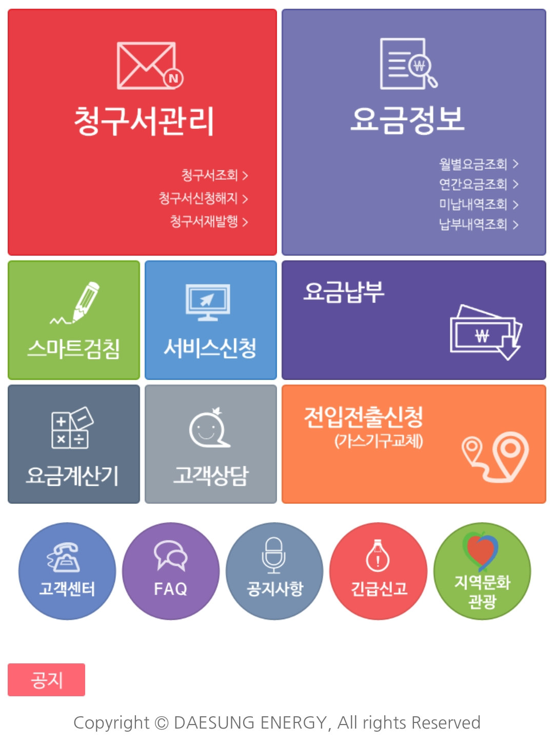 1. '대성에너지 모바일 고객센터' 앱을 실행한다.