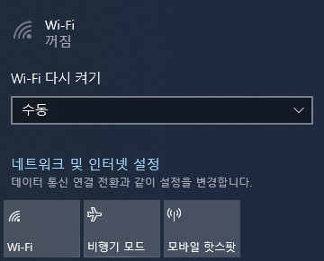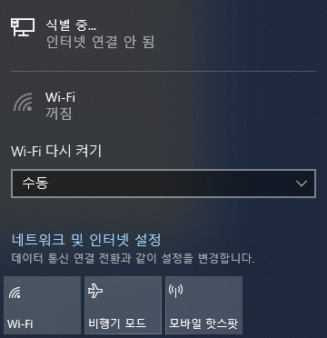 lte 와이파이 라우터를 제거하면, 위처럼 일시적으로 네트워크가 잡히지 않는다.