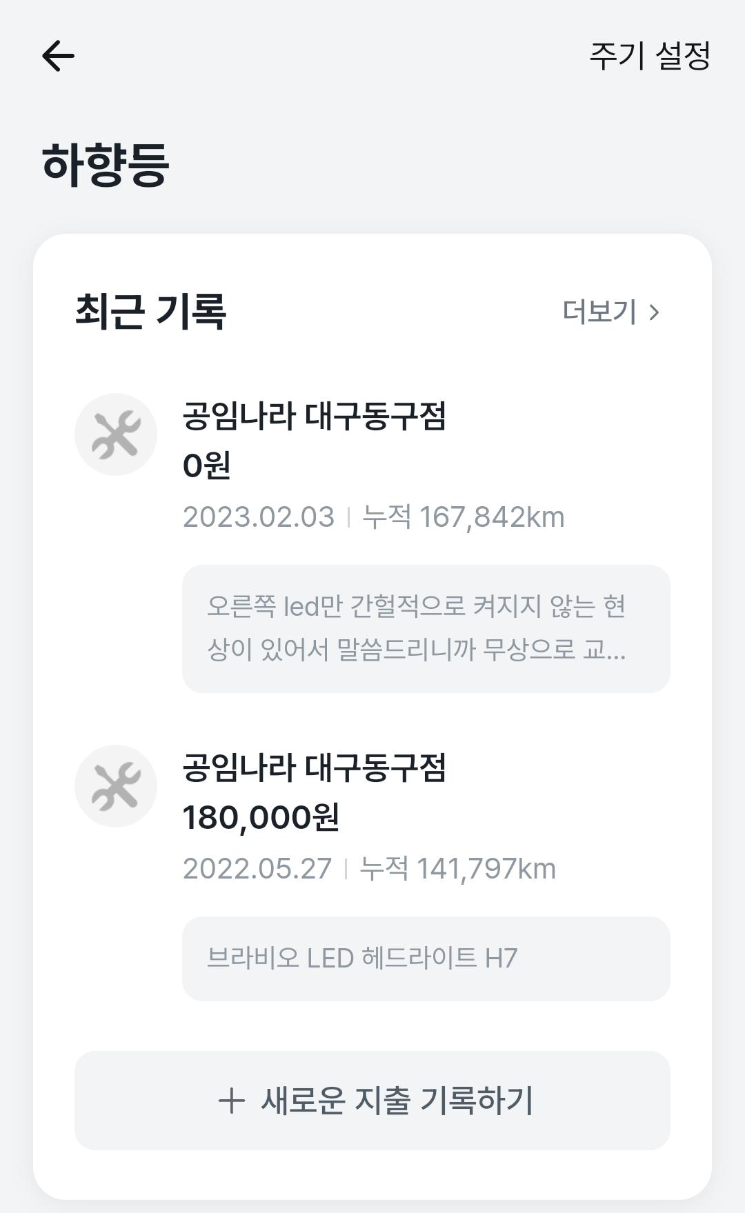 다행히 차계부 마이클 앱에는 작업 일자 및 km가 기록되어 있었는데, 이를 토대로 공임나라 지점에 문의 드렸다.