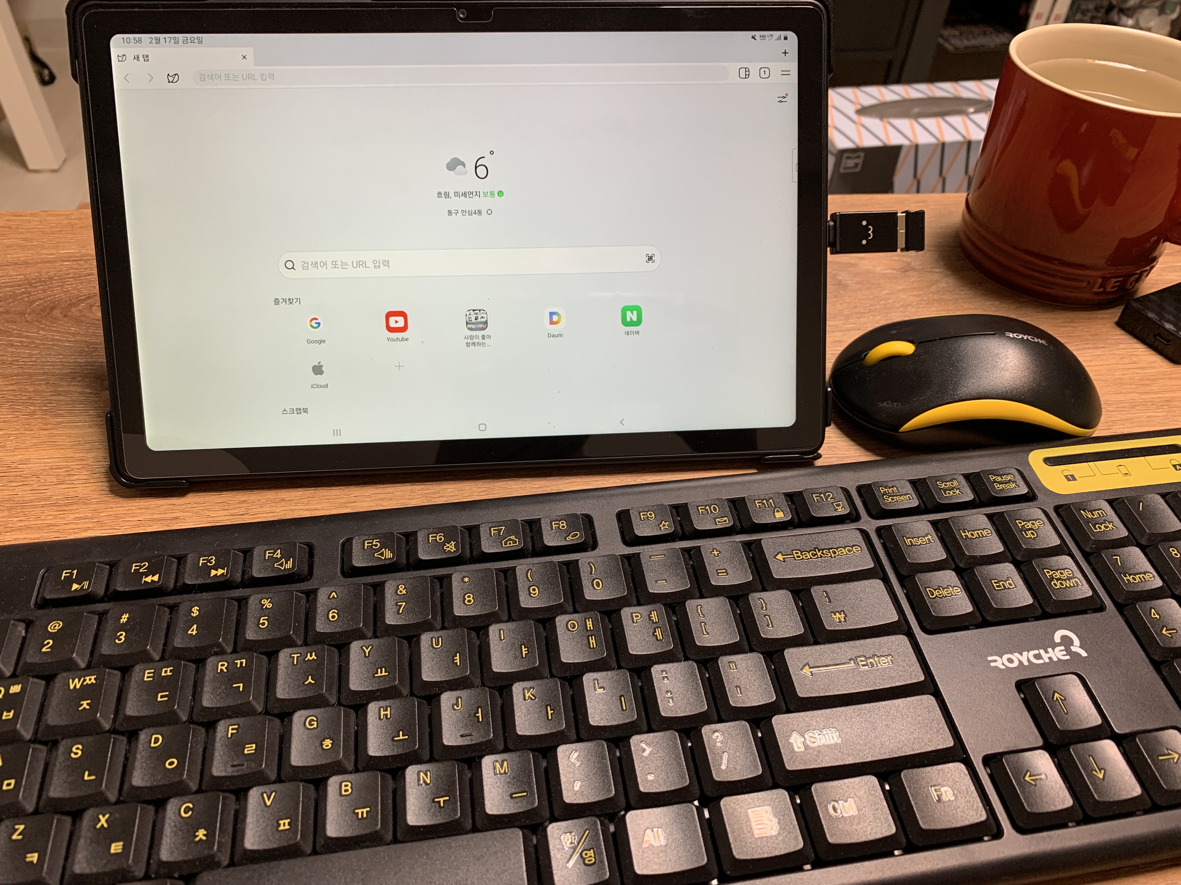 PC용 유선 키보드와 마우스 세트를 태블릿에 연결해서 사용해본 일은 있었다.