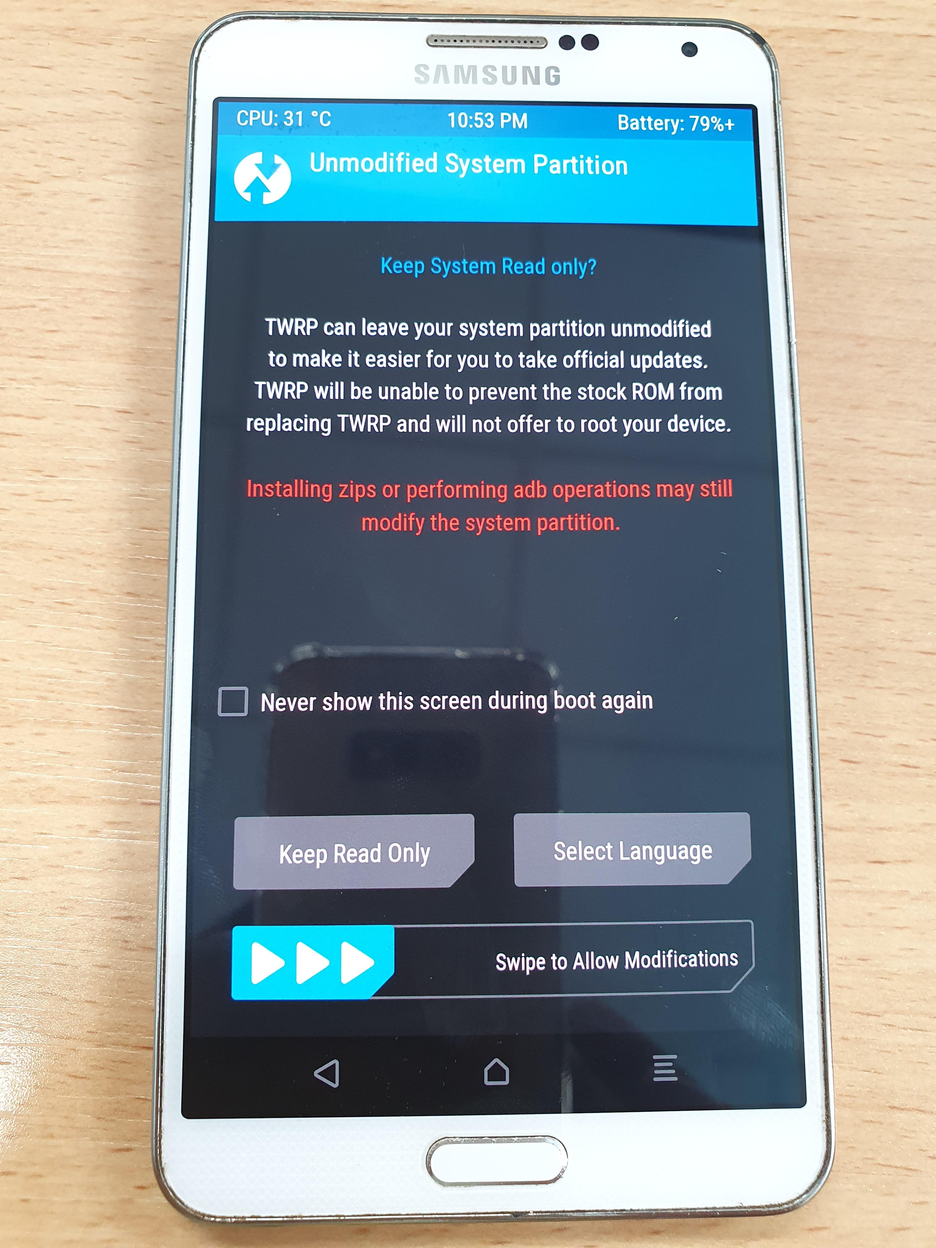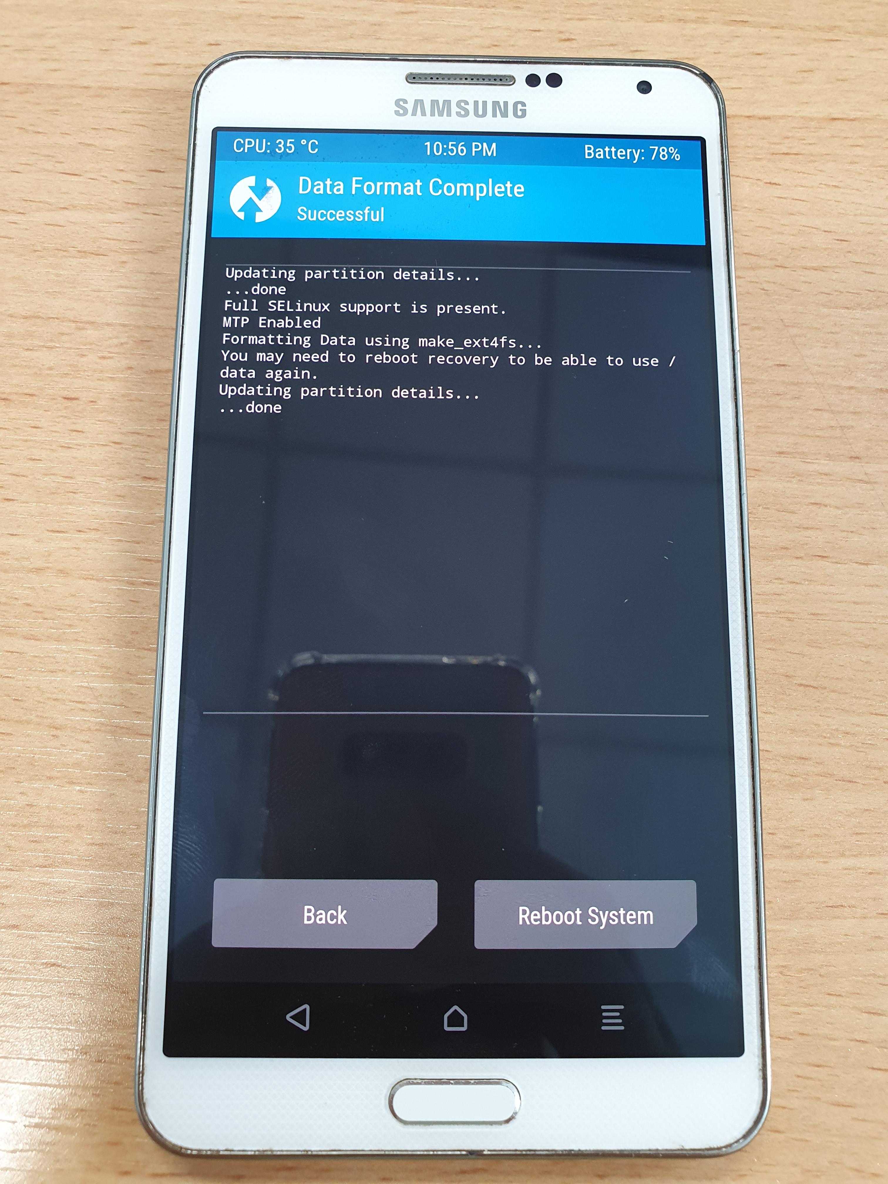→ (완료되면) TWRP 처음 화면으로 이동