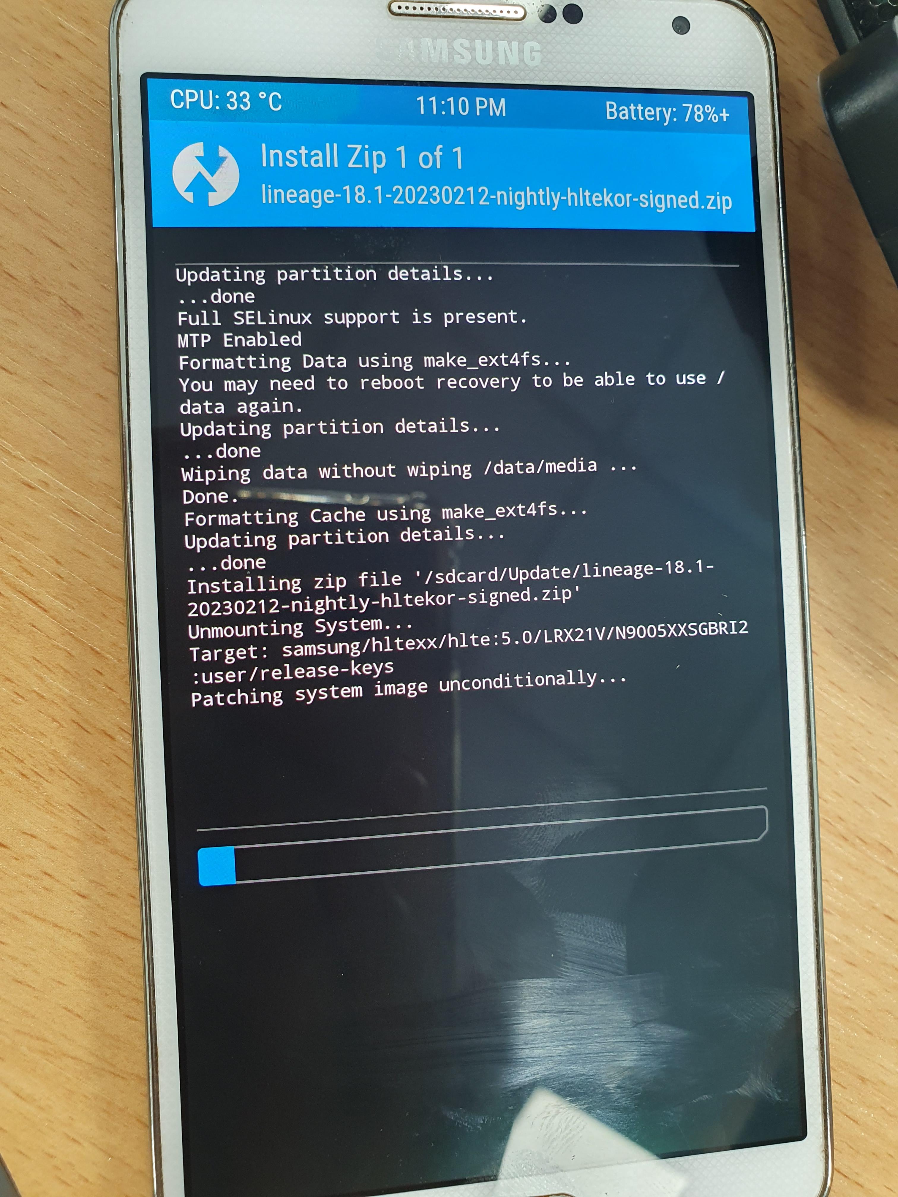 → 'lineage-18.1-20230212-nightly-hltekor-signed.zip' 선택 후, 슬라이드