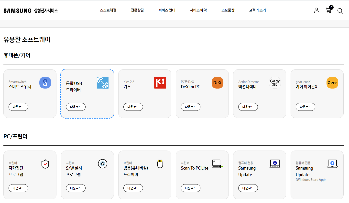 1. 삼성전자 USB 통합 드라이버* 다운로드 및 설치