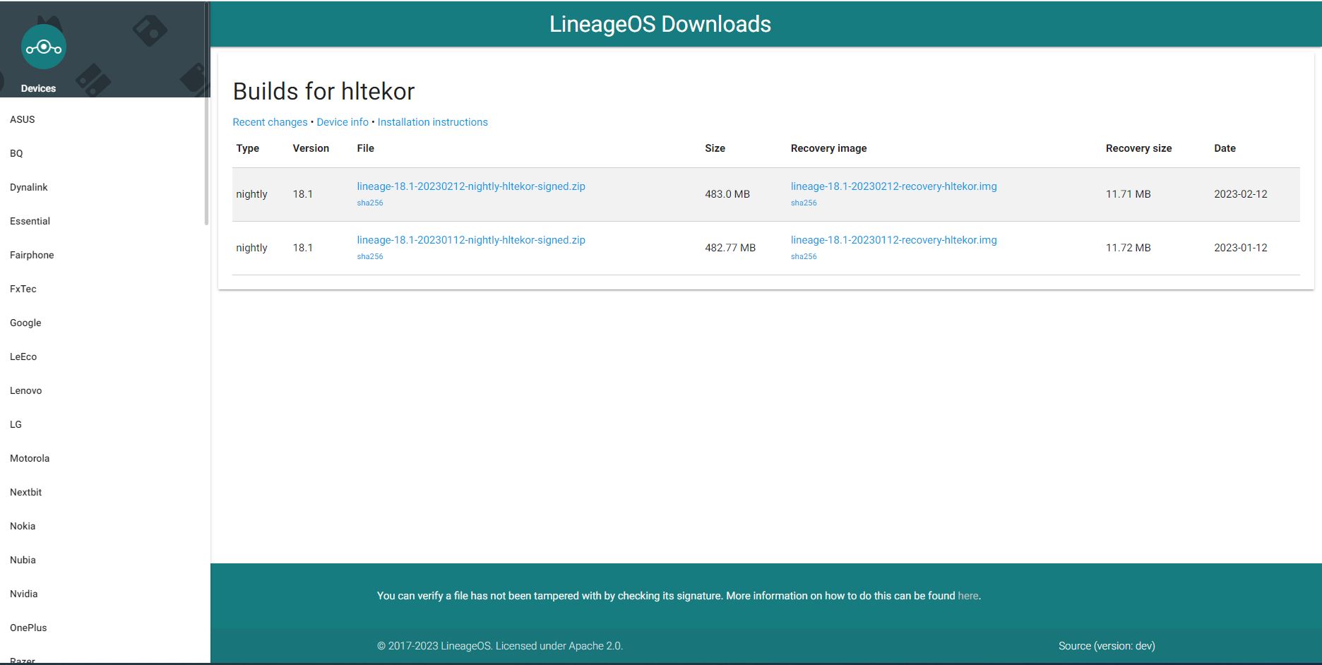 - 여기서는 리니지OS를 선택했지만, XDA 개발자포럼에서 다른 버전을 선택하는 것도 가능