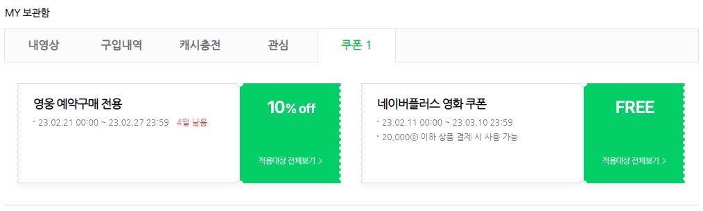 최신 영화 할인은 쿠폰(2만원권)의 형태로 지급된다.