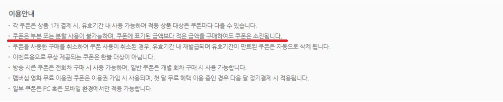 ※ 쿠폰은 부분 또는 분할 사용이 불가능하며, 쿠폰에 표기된 금액보다 적은 금액을 구매하여도 쿠폰은 소진됩니다.