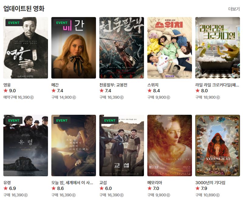 네이버 시리즈온에서 판매(또는 대여)하는 영화의 금액대는 대략 아래와 같다.