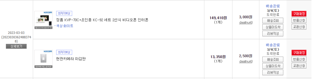 개인적으로는 괜히 '현관카메라 마감판'을 구매했다가, 반품해야 하는 사태를 만들었다.