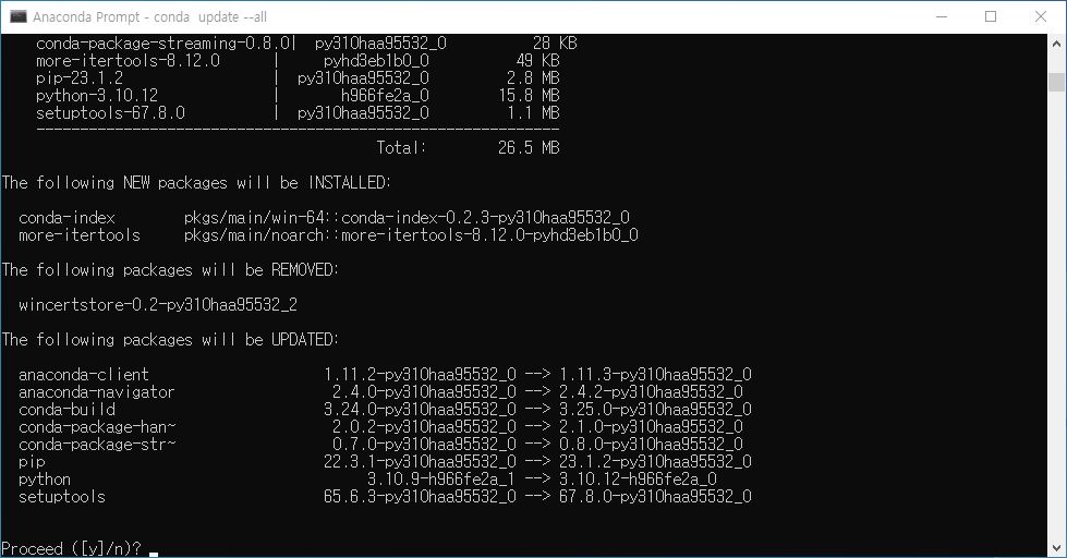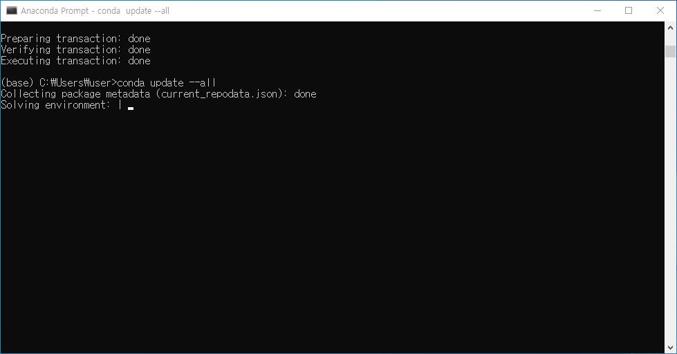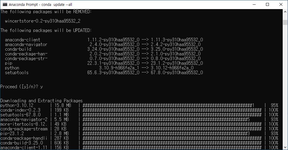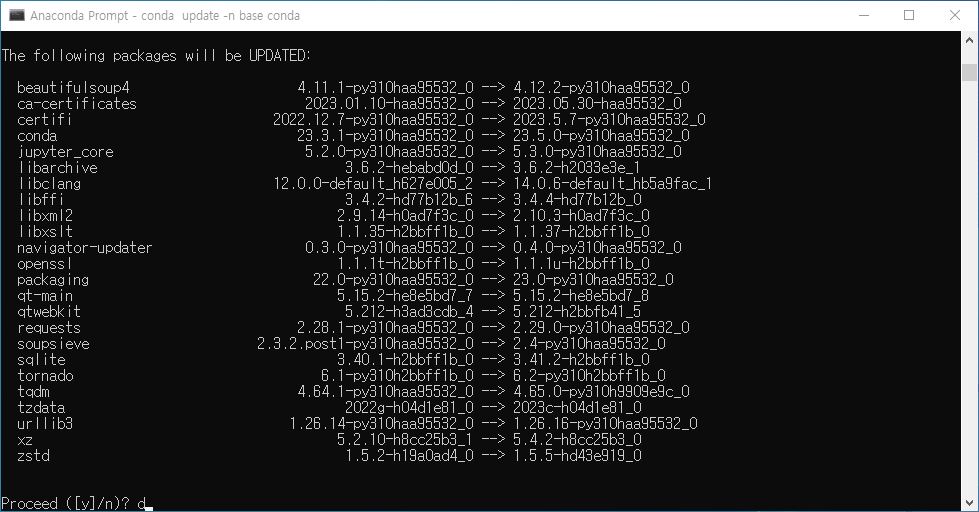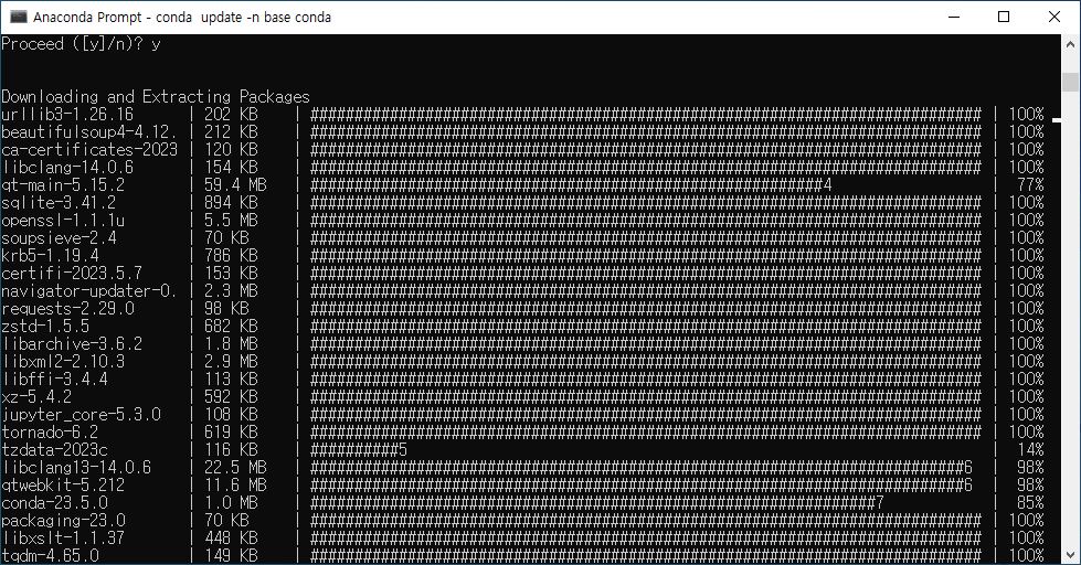 # 아나콘다 프롬프트(Anaconda Prompt)에서 아나콘다를 업데이트하기