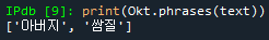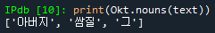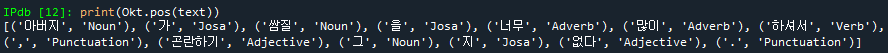 # 형태소 분석기(Okt)를 적용하여, 품사 쪼개기