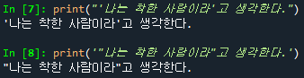 문장 안에 따옴표를 구분하여 사용하고 싶을 때, 활용하면 유용하다.