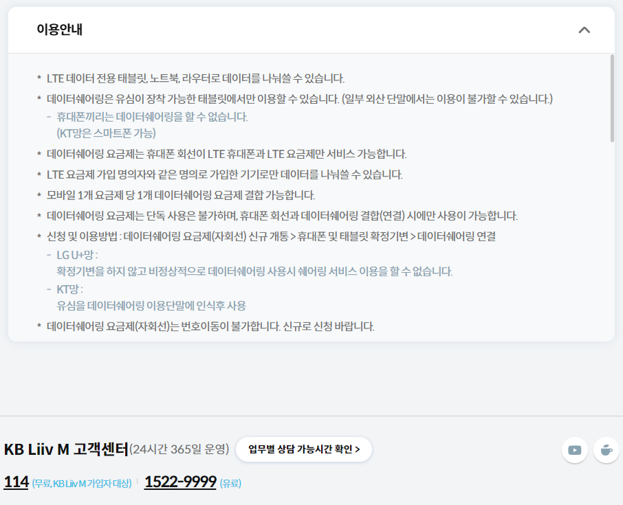 리브모바일의 경우는 어떤 정책을 가지고 있는지에 대해 오늘 일자(2024.5.27.)를 기준으로, 아무런 표시된 바가 없다.