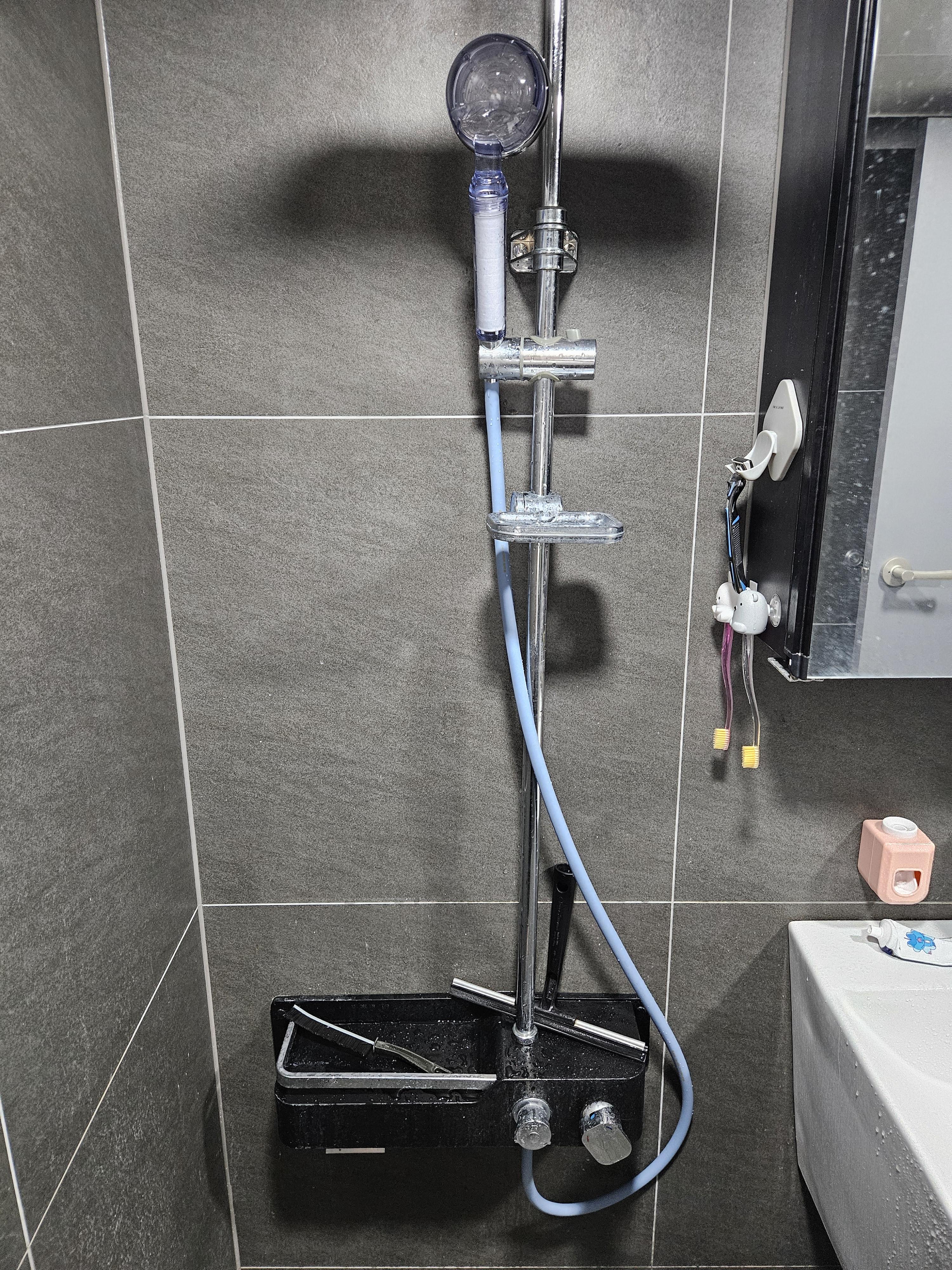 물때 그득하던 샤워기 호스와 어설프던 샤워기 헤드를 버리고 나니, 속이 다 시원하다.