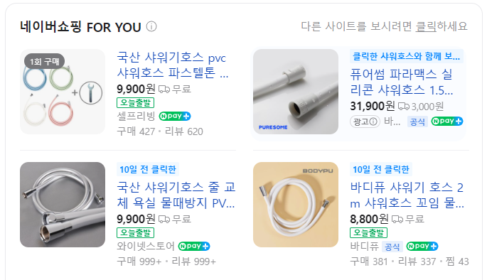 국산 PVC 샤워기 호스 가격: 9,900원(배송비 포함)