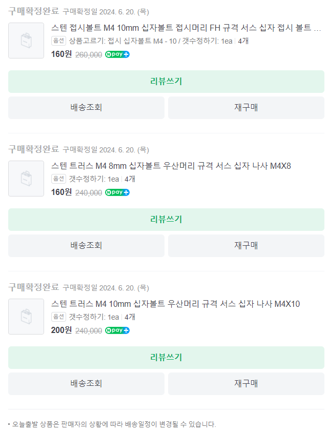 그러나 여러 번 재구매하는 불상사를 막기 위해 그냥 비슷한 규격을 죄다 구매해 버렸다.