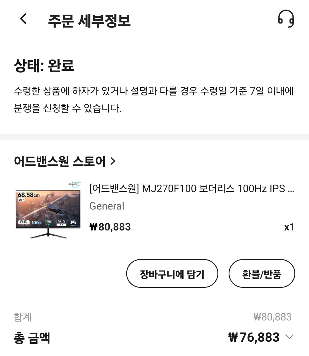 주문한지 하루 만에 도착한 IPS 패널 27인치 100Hz 모니터.