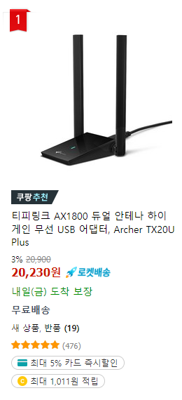 그리고 결국 구매한 티피링크 Archer TX20U plus!