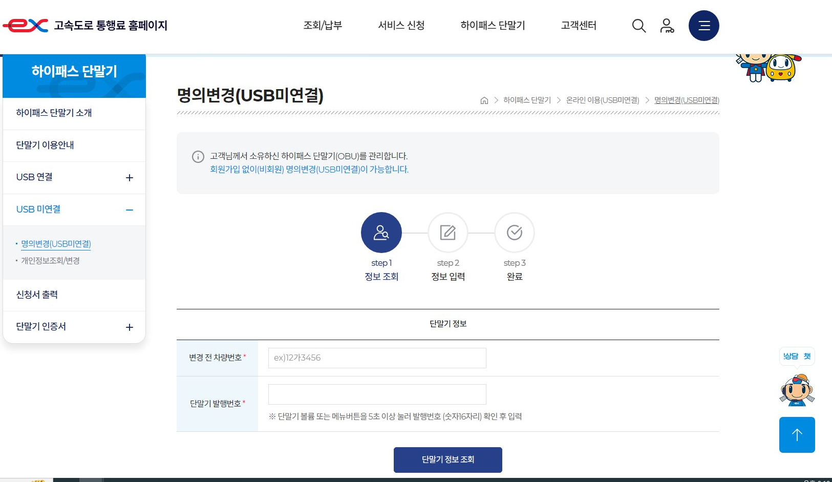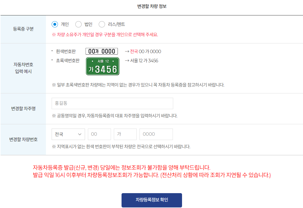 이때 확인하는 정보는 '변경 전 차량번호'와 '단말기 발행번호'가 끝이다.