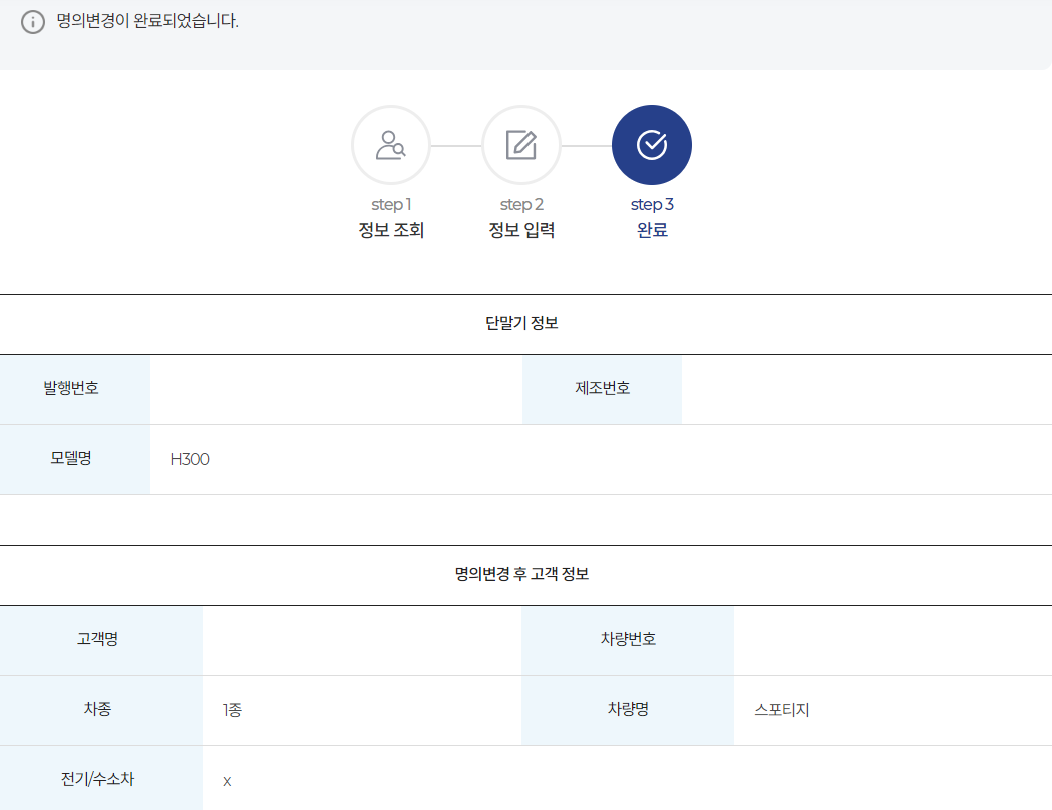 명의변경이 간단히(?) 완료되었다.