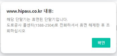 도로공사 콜센터(1588-2504)와 통화가 되면, 구구절절 설명할 필요없이 '하이패스 단말기 휴면 해제'를 요청하면 된다.