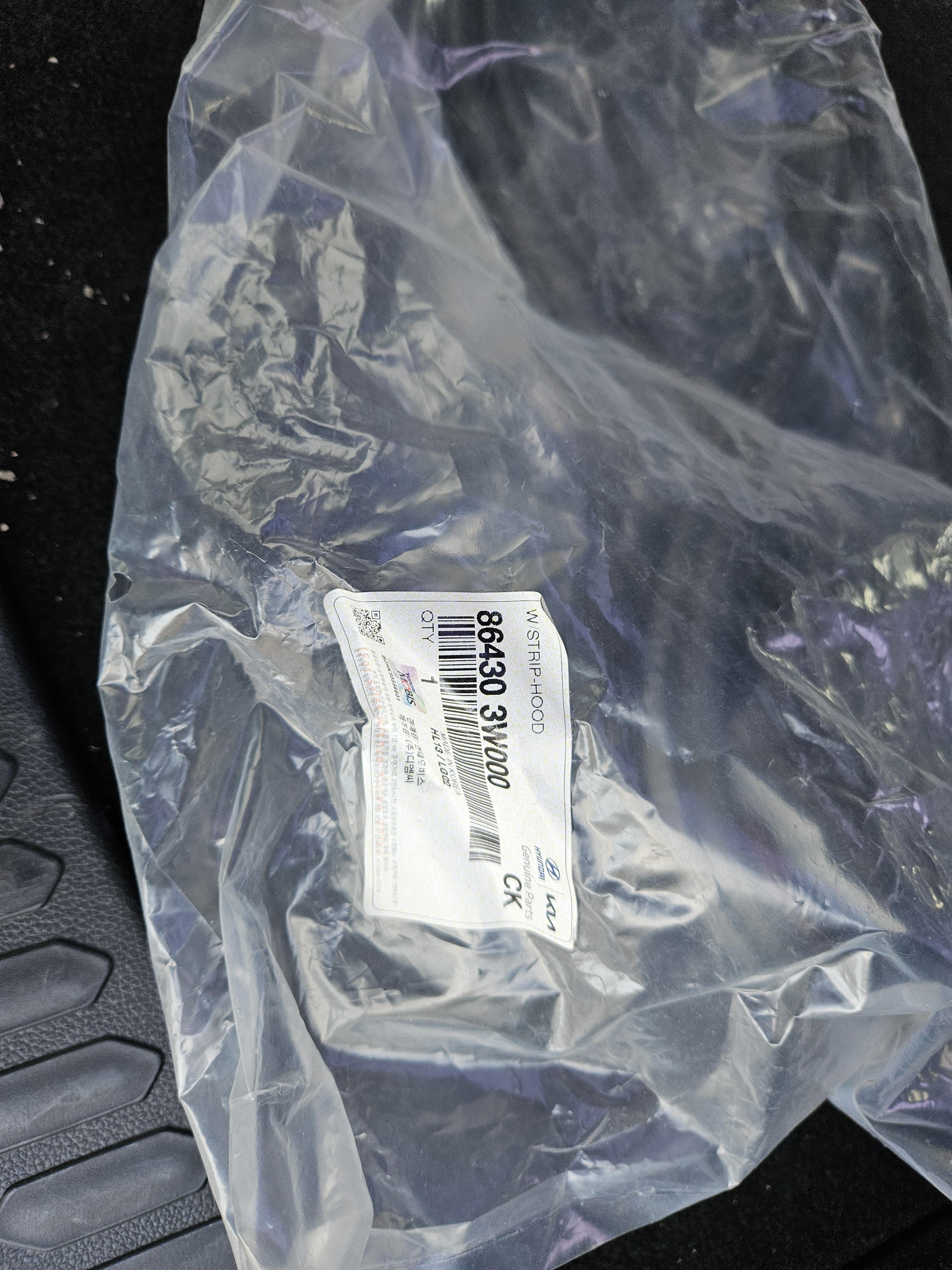 웨더스트립 후드는 양쪽 끝이 양면 테이프로 고정되어 있으므로, 주저 말고 그냥 뜯어 내자.