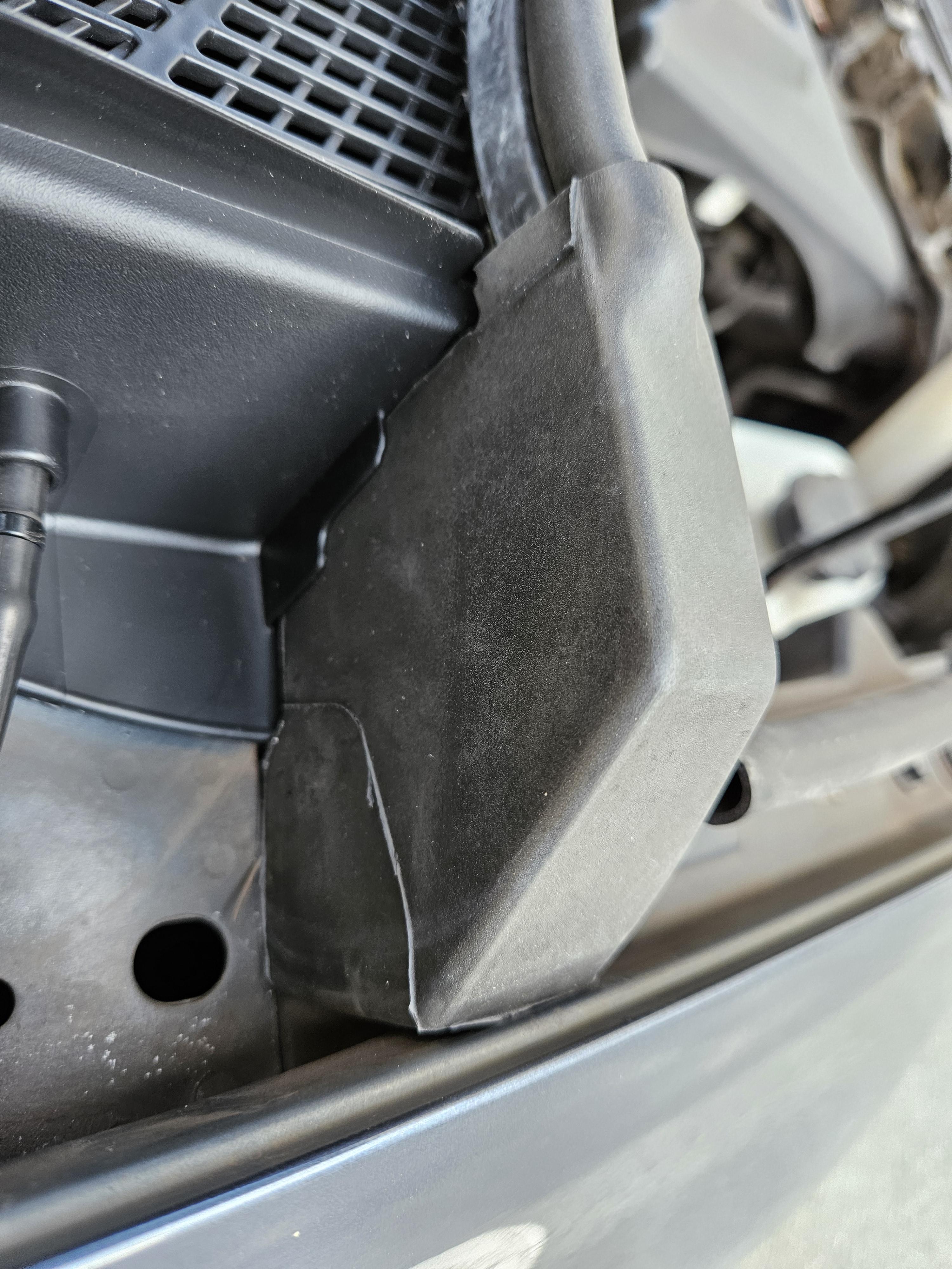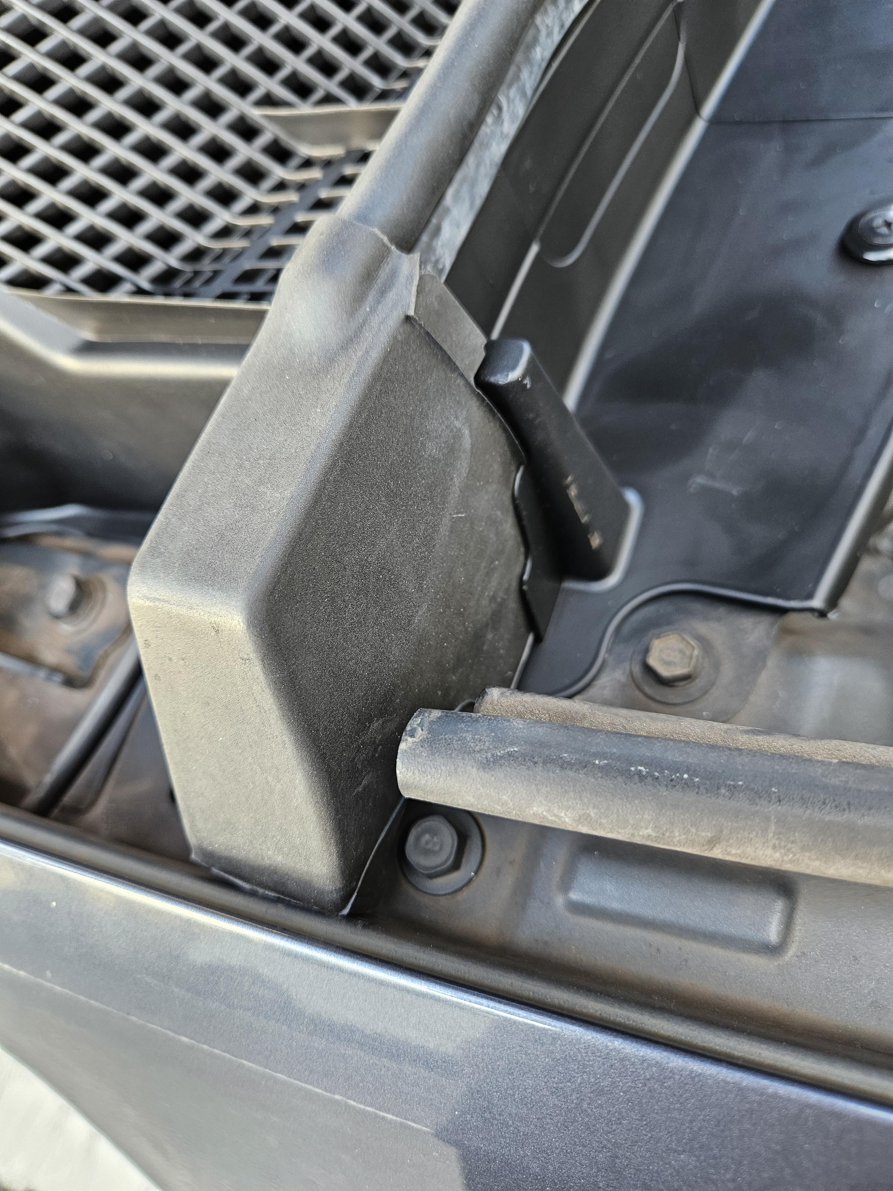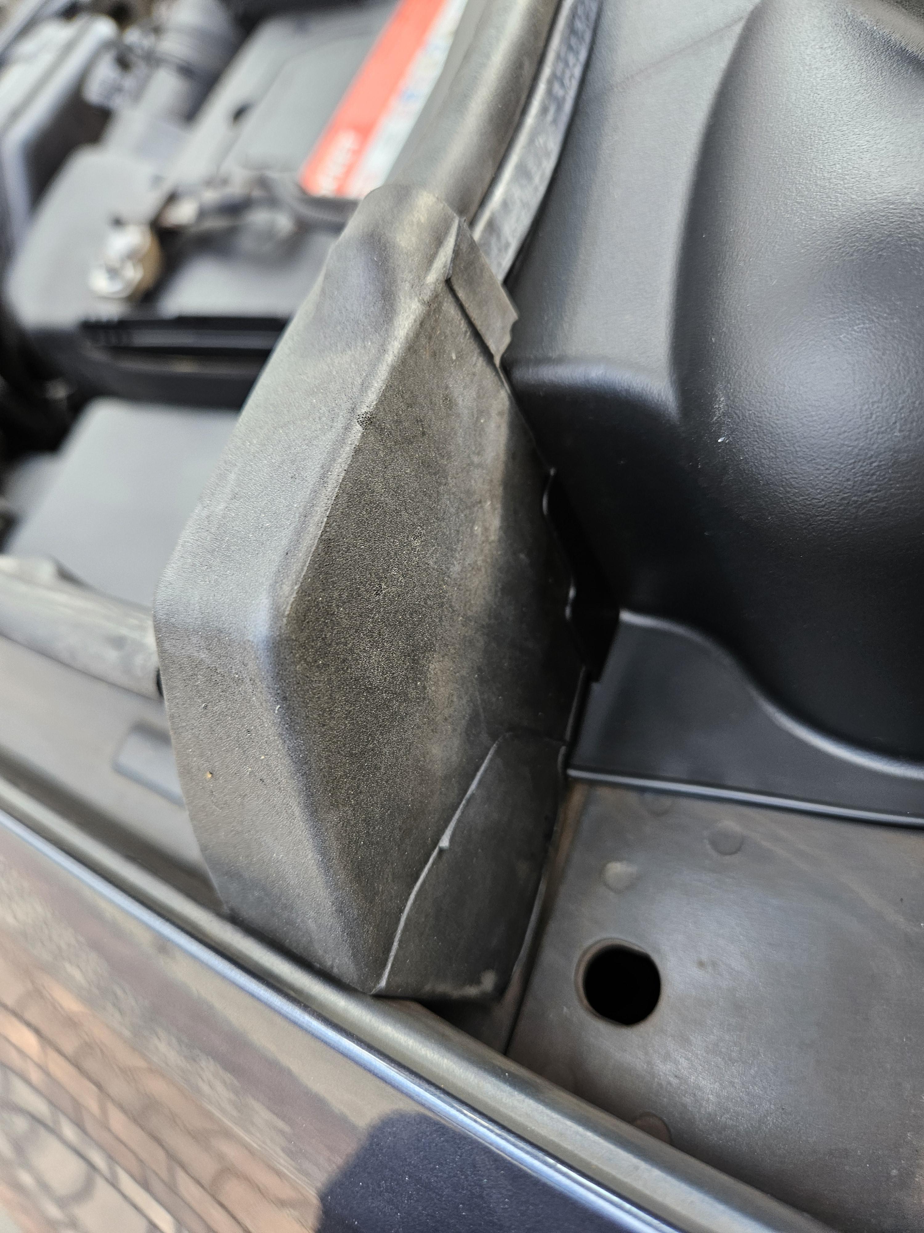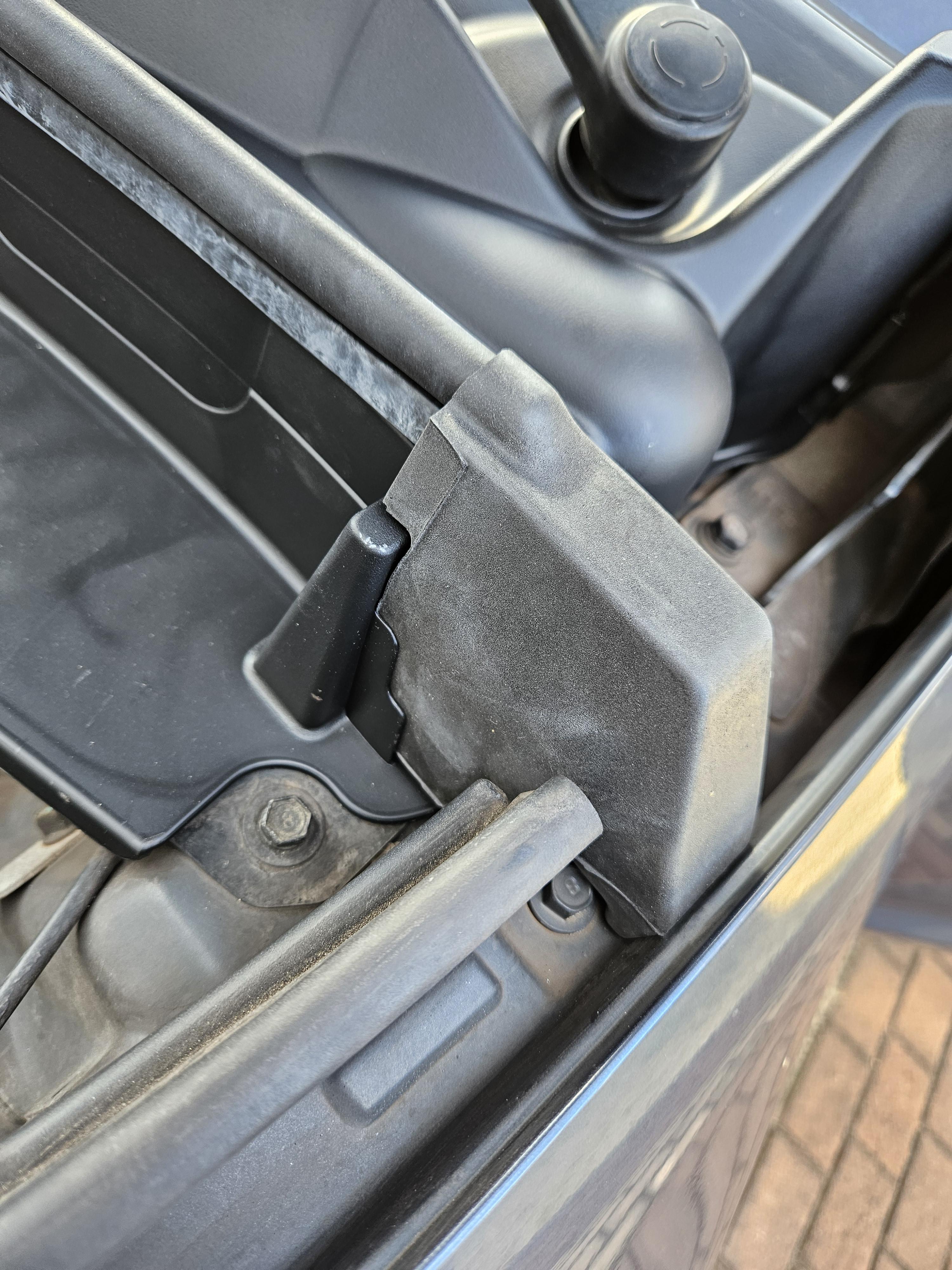 카울 커버 위로 웨더스트립 후드를 차곡차곡 꽂아주고, 양쪽 끝의 고무도 위치를 잘 잡아주자.