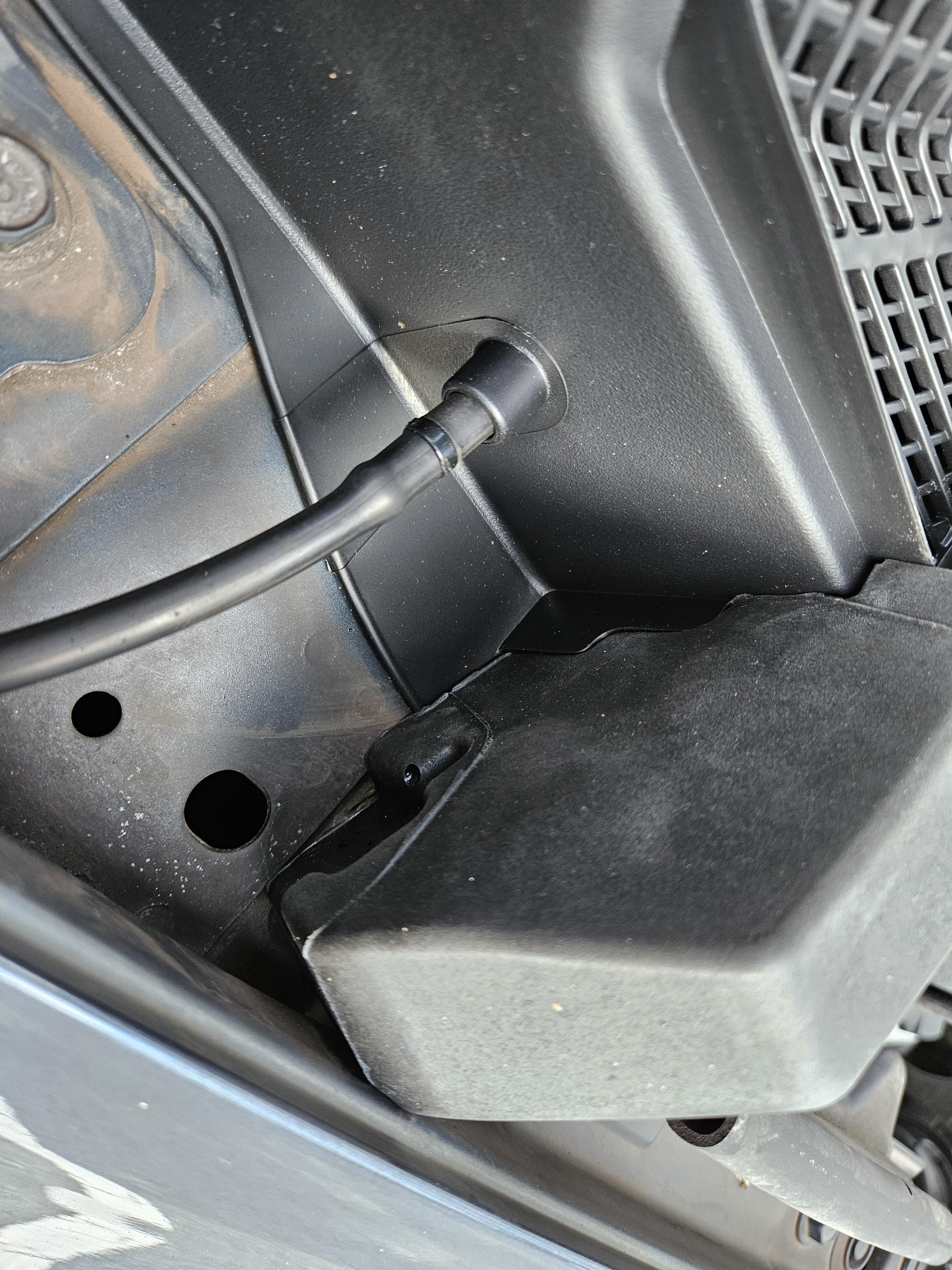 조수석쪽 커버에는 워셔액 노즐이 연결되어 있다.