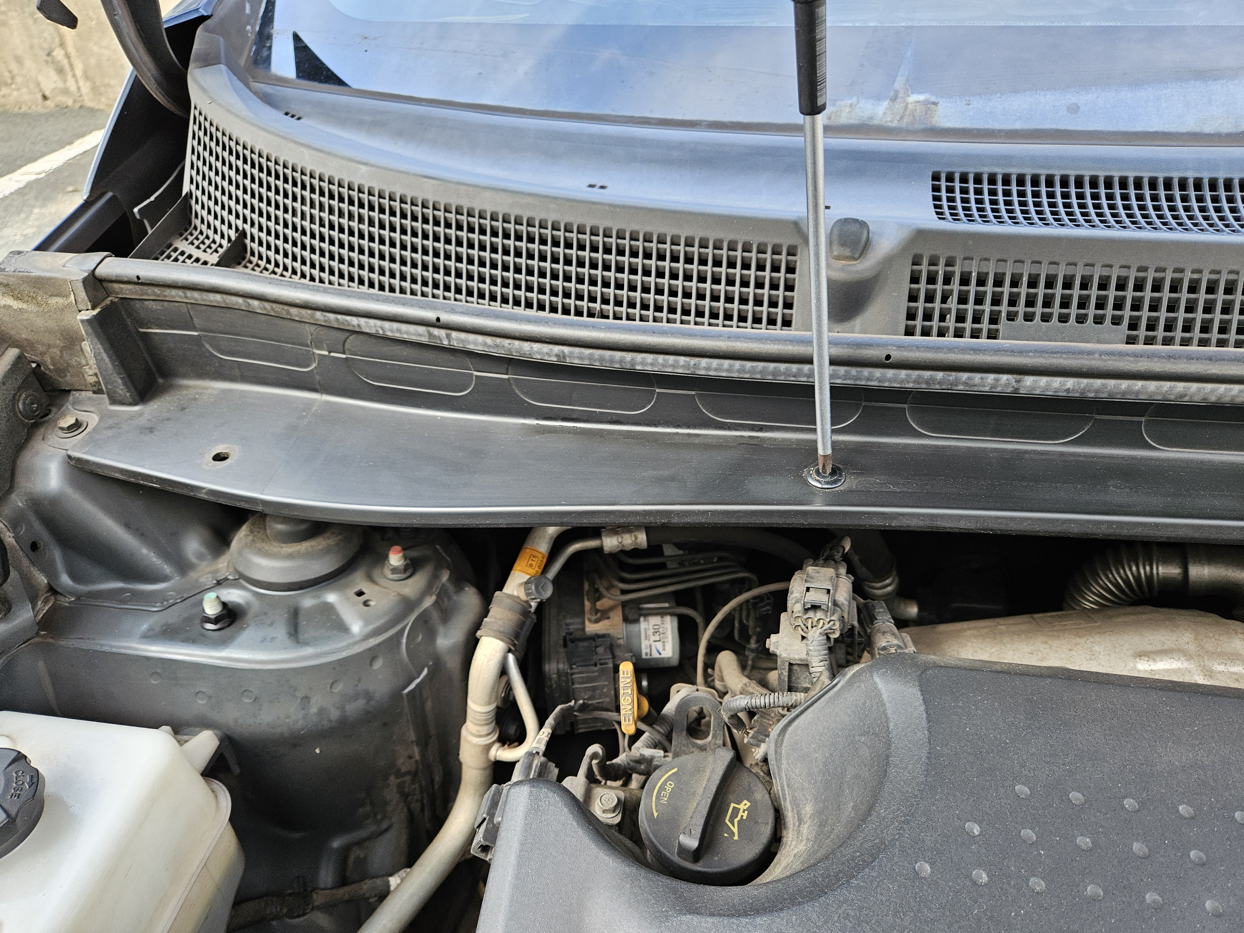와이퍼암을 뺐다면, 다음으로는 카울 커버의 볼트를 빼야 한다.