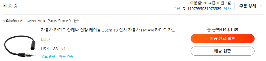 5) 라디오 안테나 연장 케이블은 필수품은 아니지만, 지난 번에 작업할 때 보니, 확실히 연장해 놓으면 설치하기가 편했다.