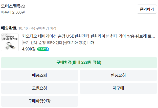 3) 카오디오 네비게이션 순정 USB 변환케이블 = 7,400원
