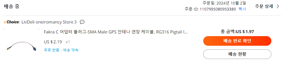 3) Farka C to SMA 케이블은 샤크 안테나의 GPS 신호를 안드로이드 올인원에 전달하는 역할을 한다.