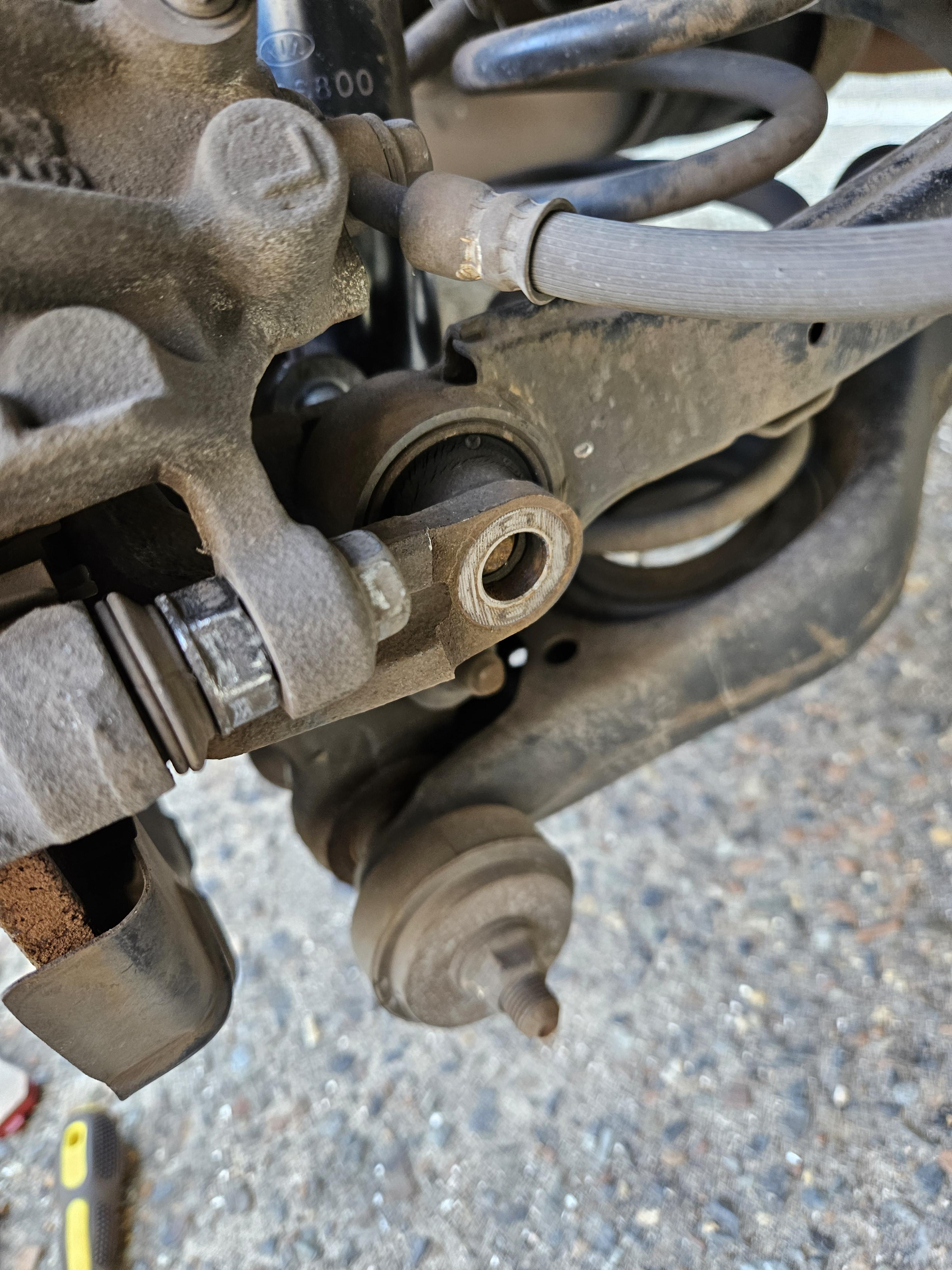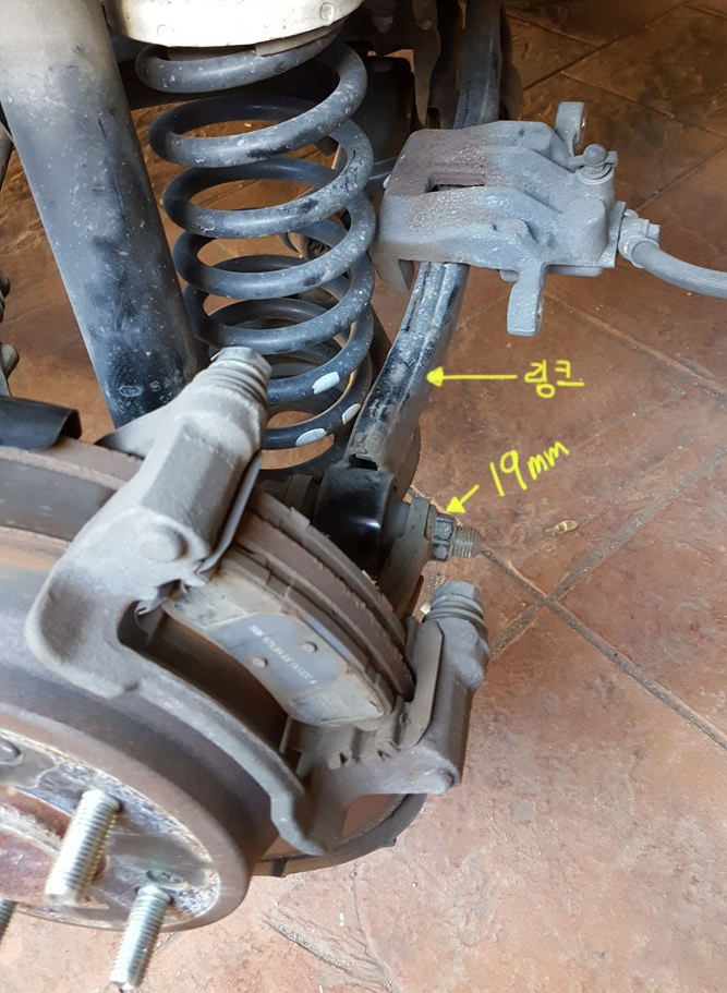 빠진 캘리퍼는 적당히 걸쳐 두었는데, 케이블 타이 같은 걸로 묶어주면 작업하기에 훨씬 편하다고 한다.