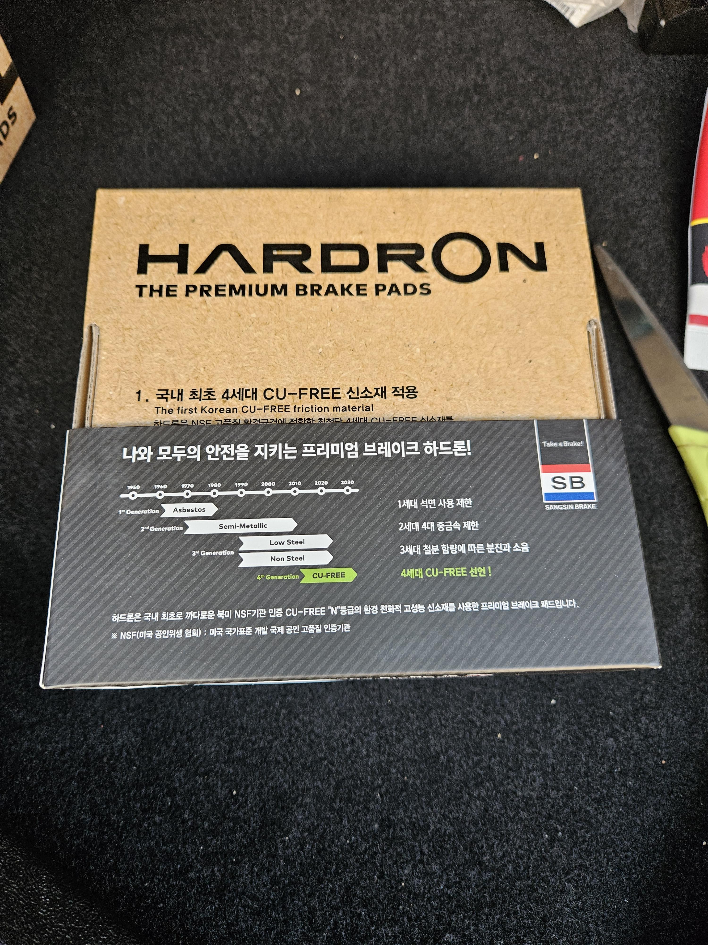 브레이크 패드 호환품의 경우는 기존 브레이크 패드에 붙어 있던 쇠붙이를 옮겨 주어야 한다.