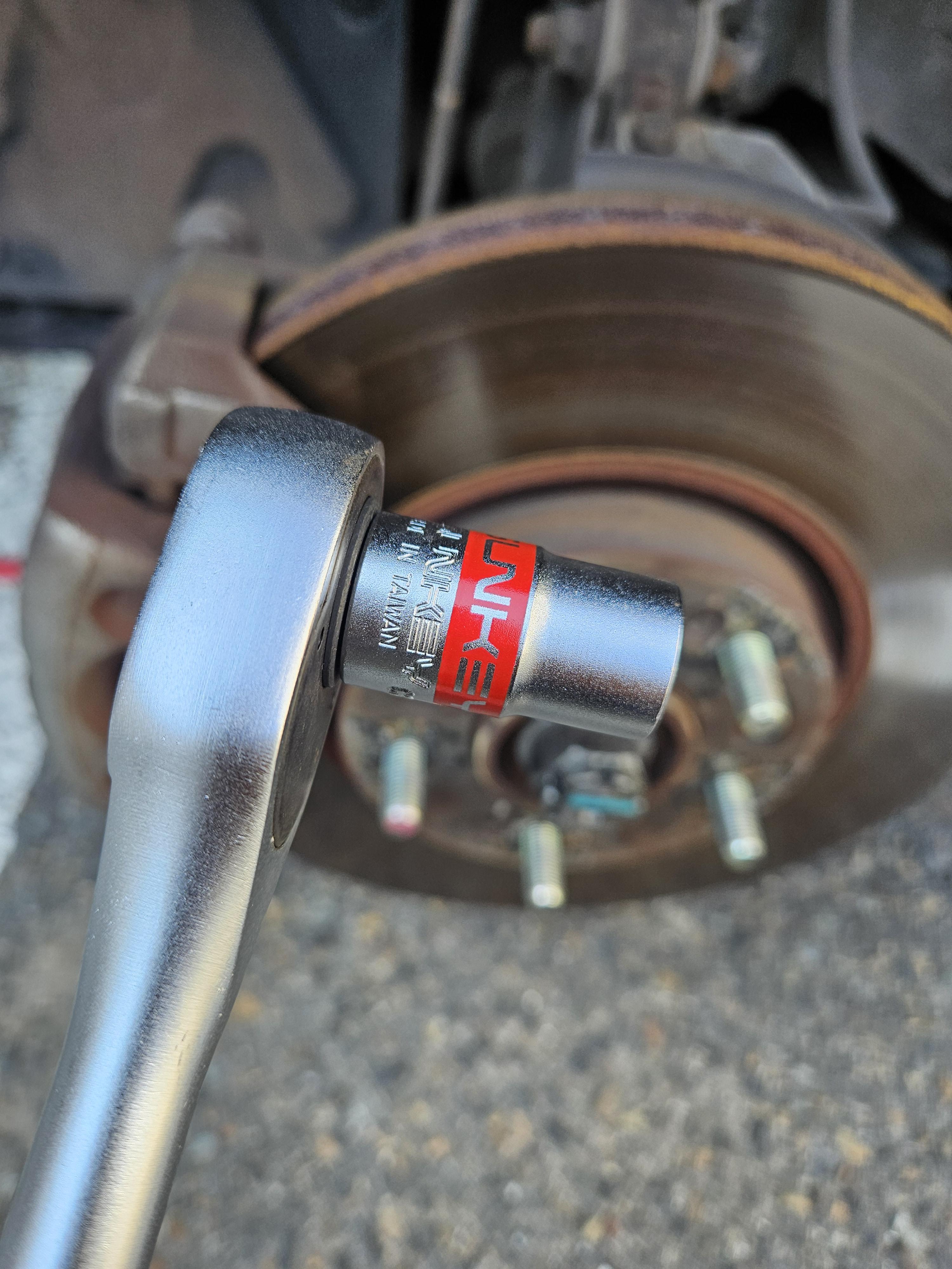 차를 띄우기 전에, 21mm 소켓을 끼운 라쳇 렌치로 미리 휠 너트를 풀어주었다.