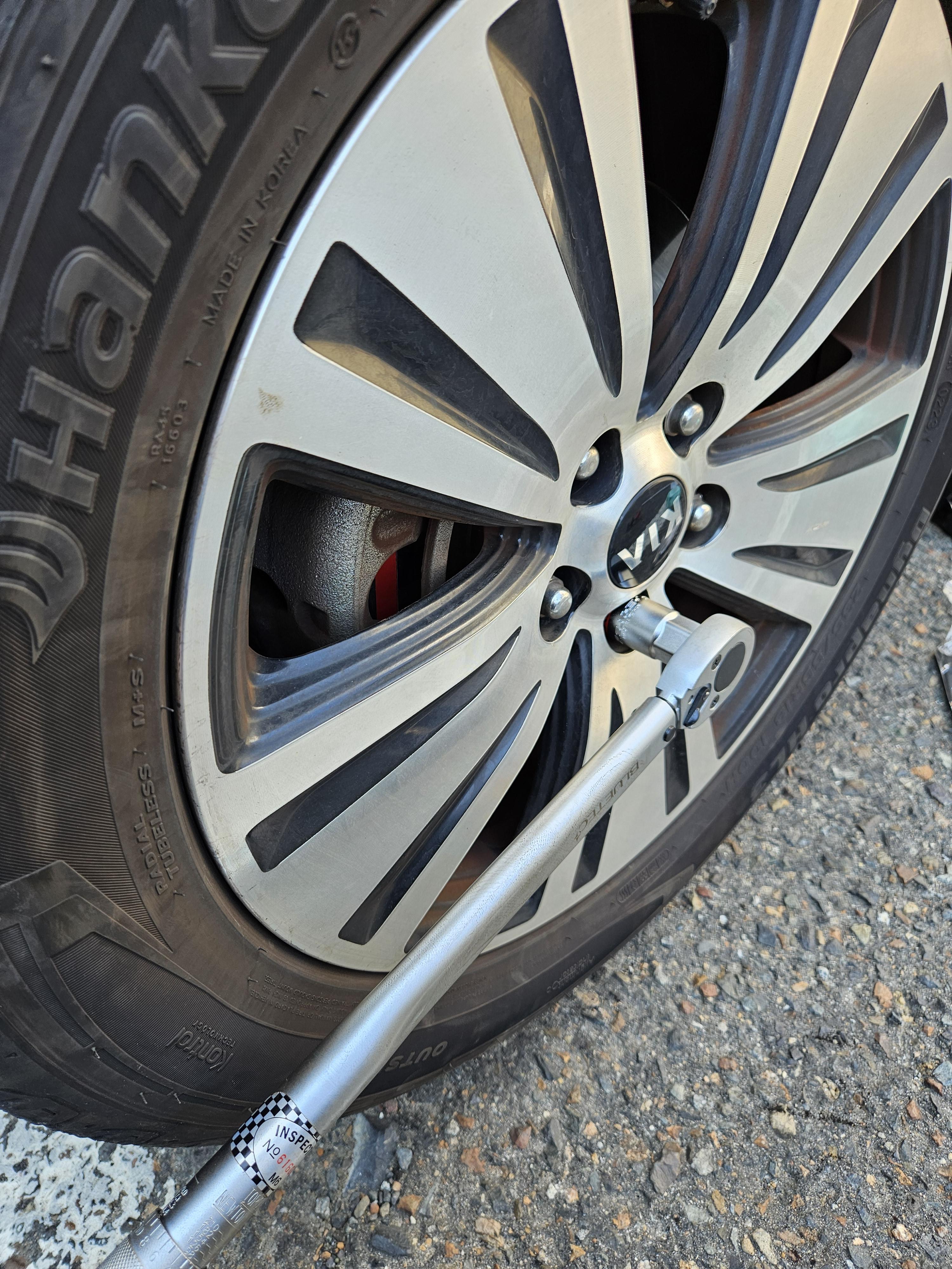 여기까지 했으면 휠너트에 타이어를 끼우고, 조여준다.