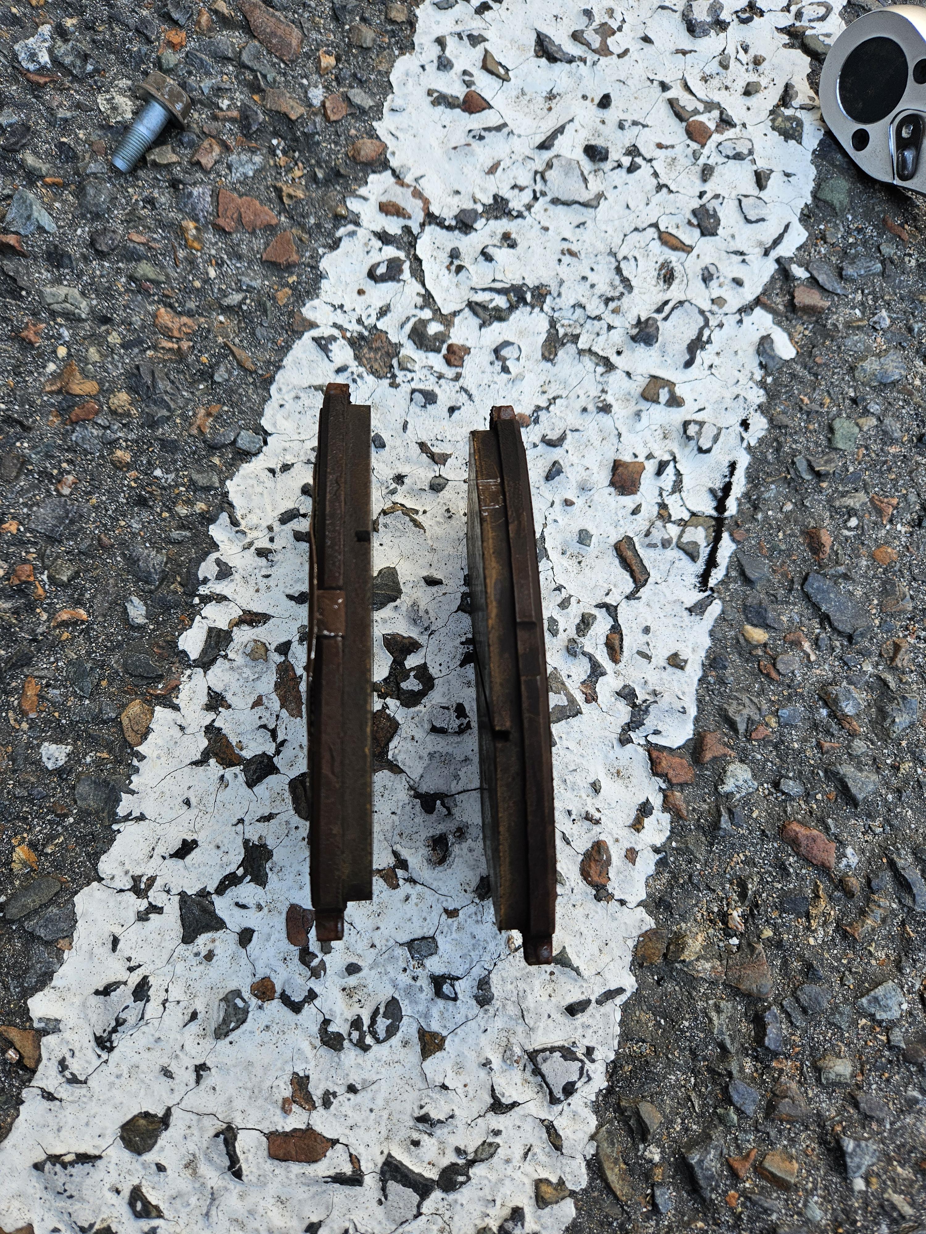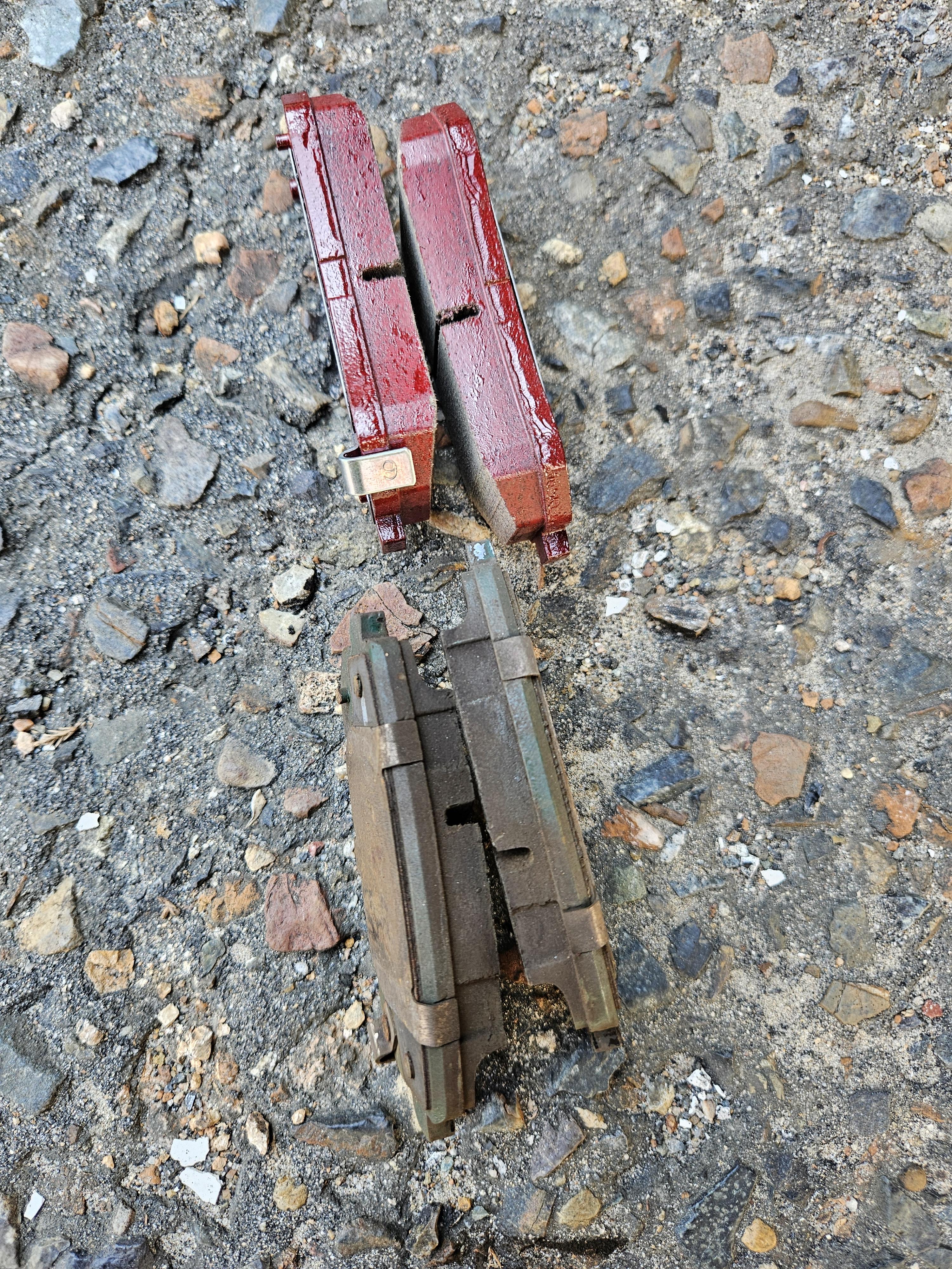 꺼낸 브레이크 패드와 신품을 비교해 보니, 두께 차이가 확연하다.