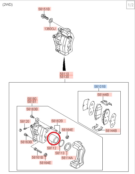 스포티지R의 경우는 이 상태에서 브레이크 패드를 바로 제껴서, 꺼내 주어도 되었다.