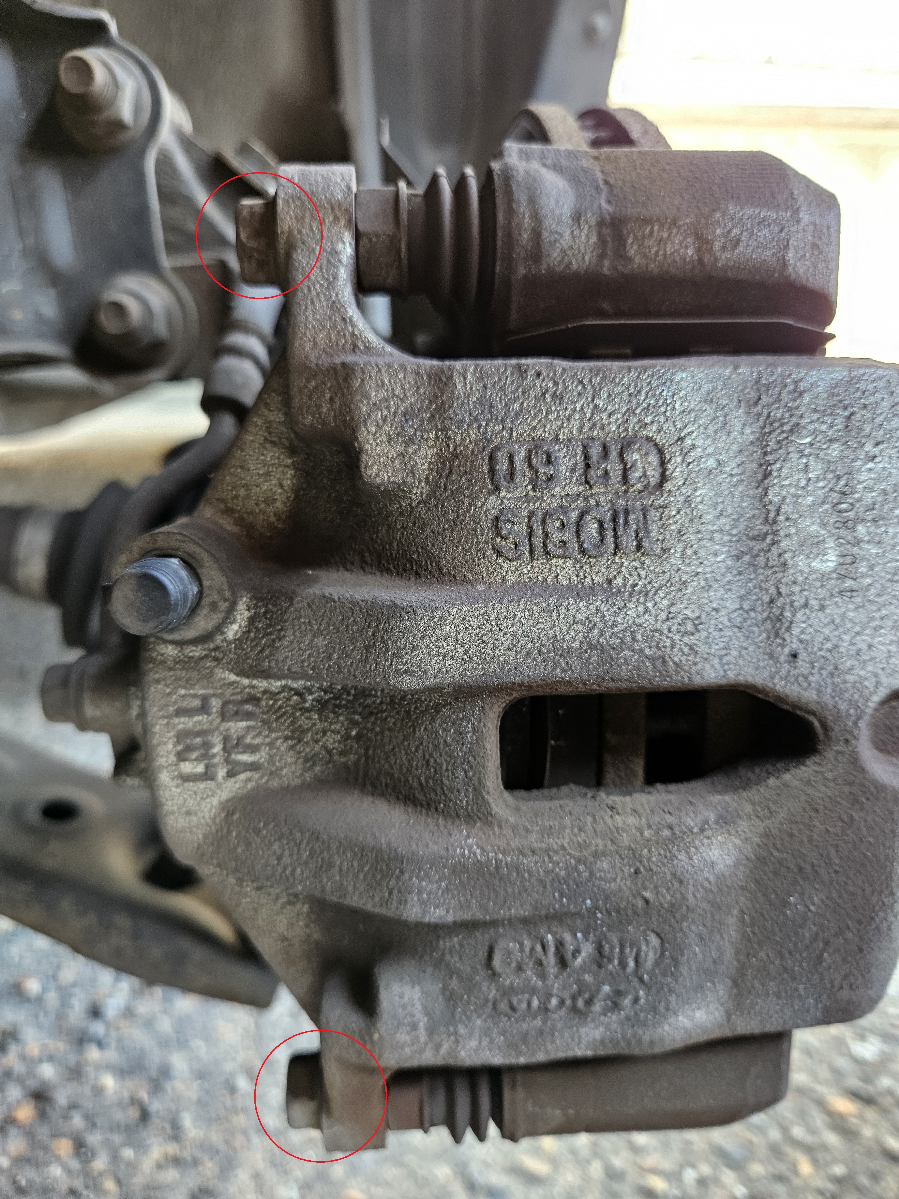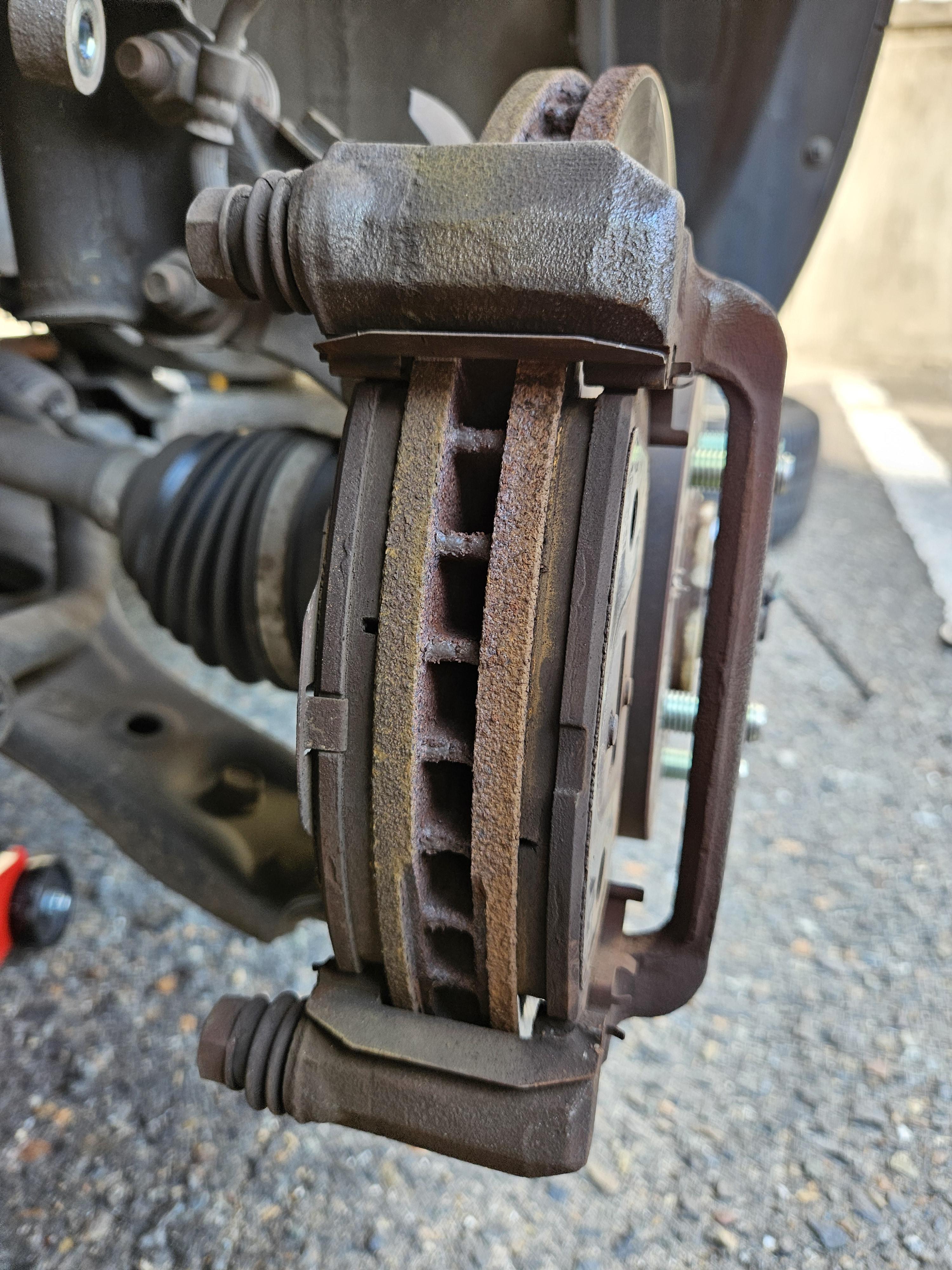 앞쪽에 있는 캘리퍼와 연결된 브레이크 호스의 길이가 짧기 때문에, 두 곳을 풀지 않으면 브레이크 패드를 꺼낼 수 없었다.