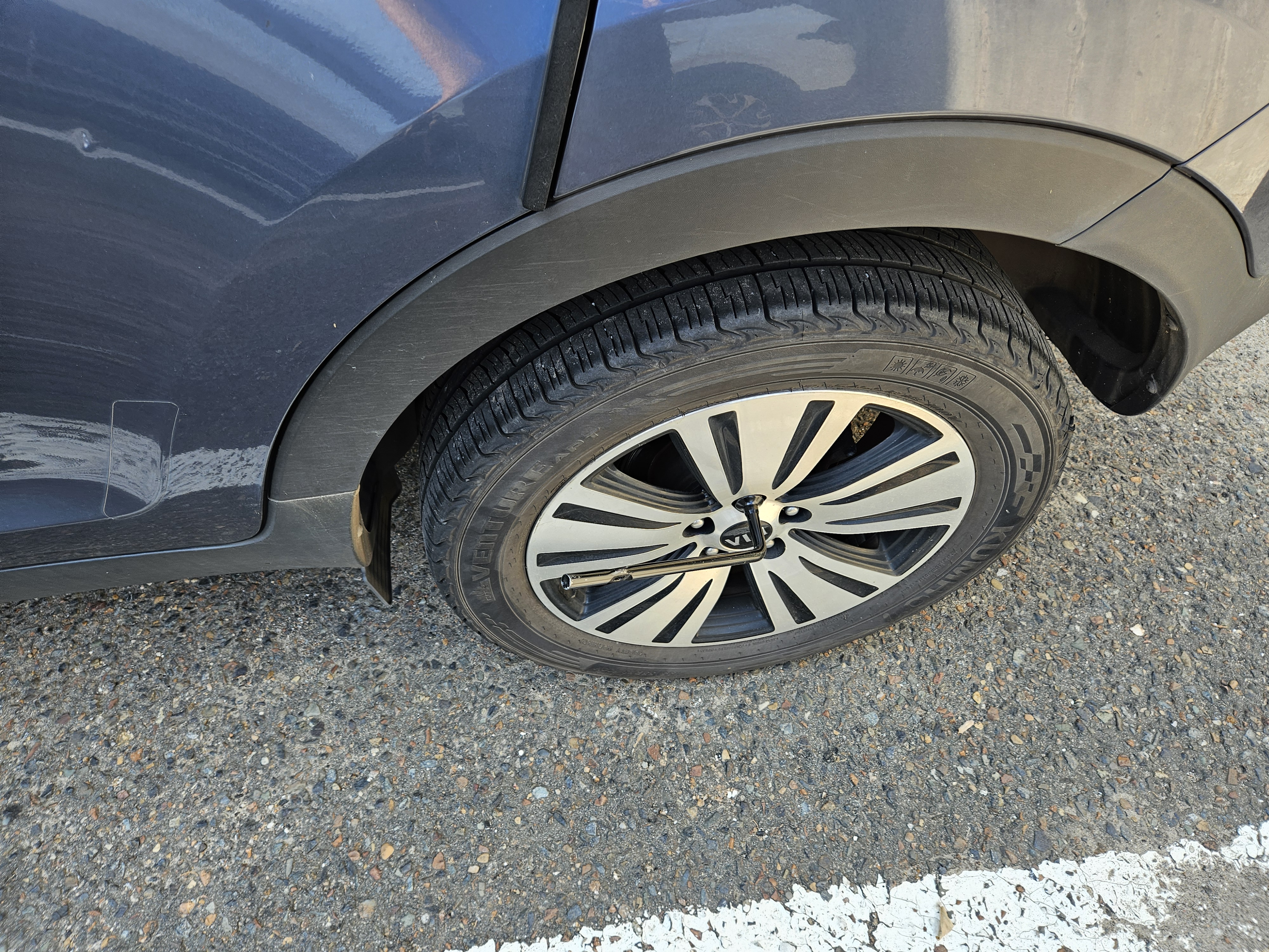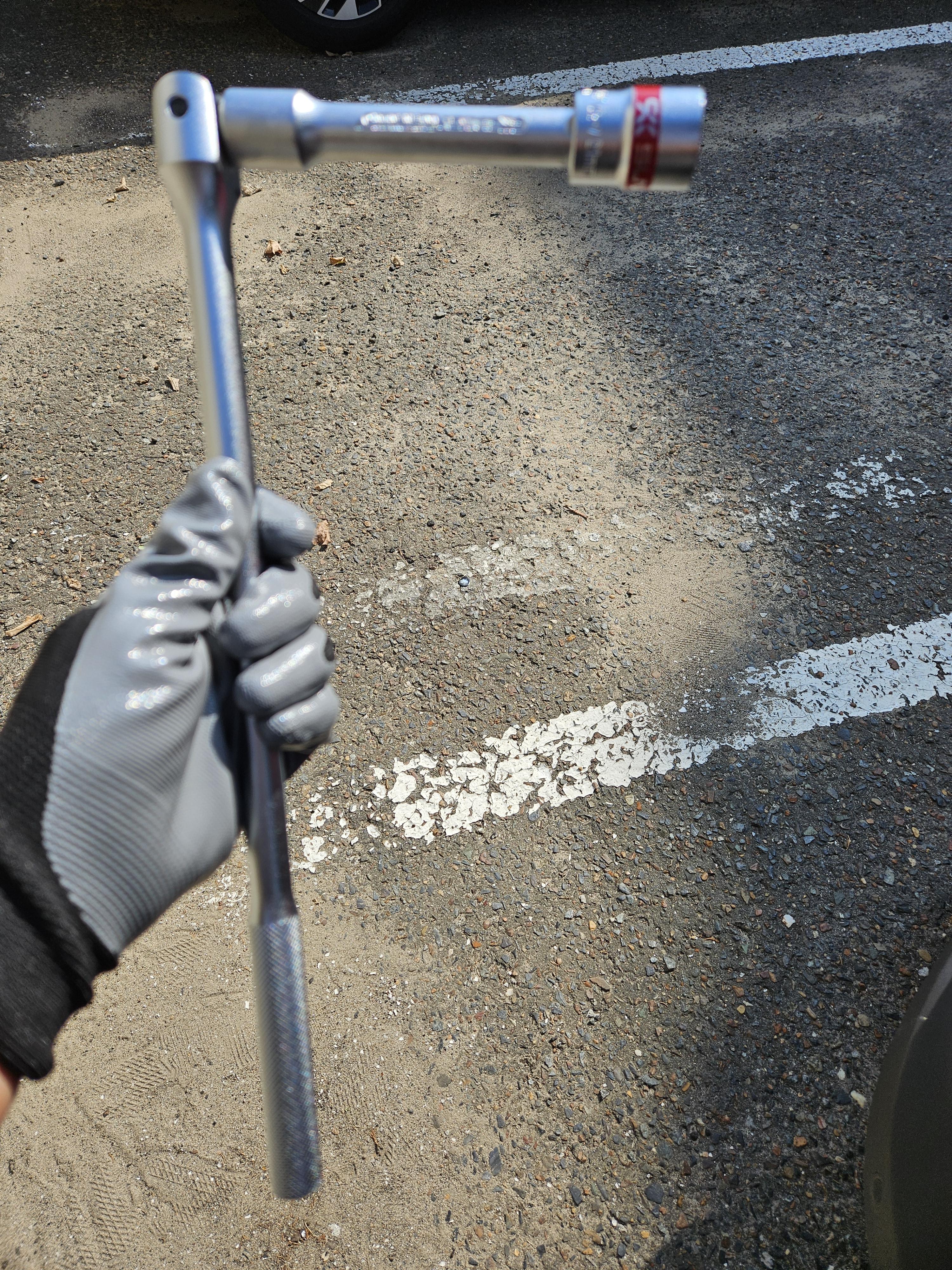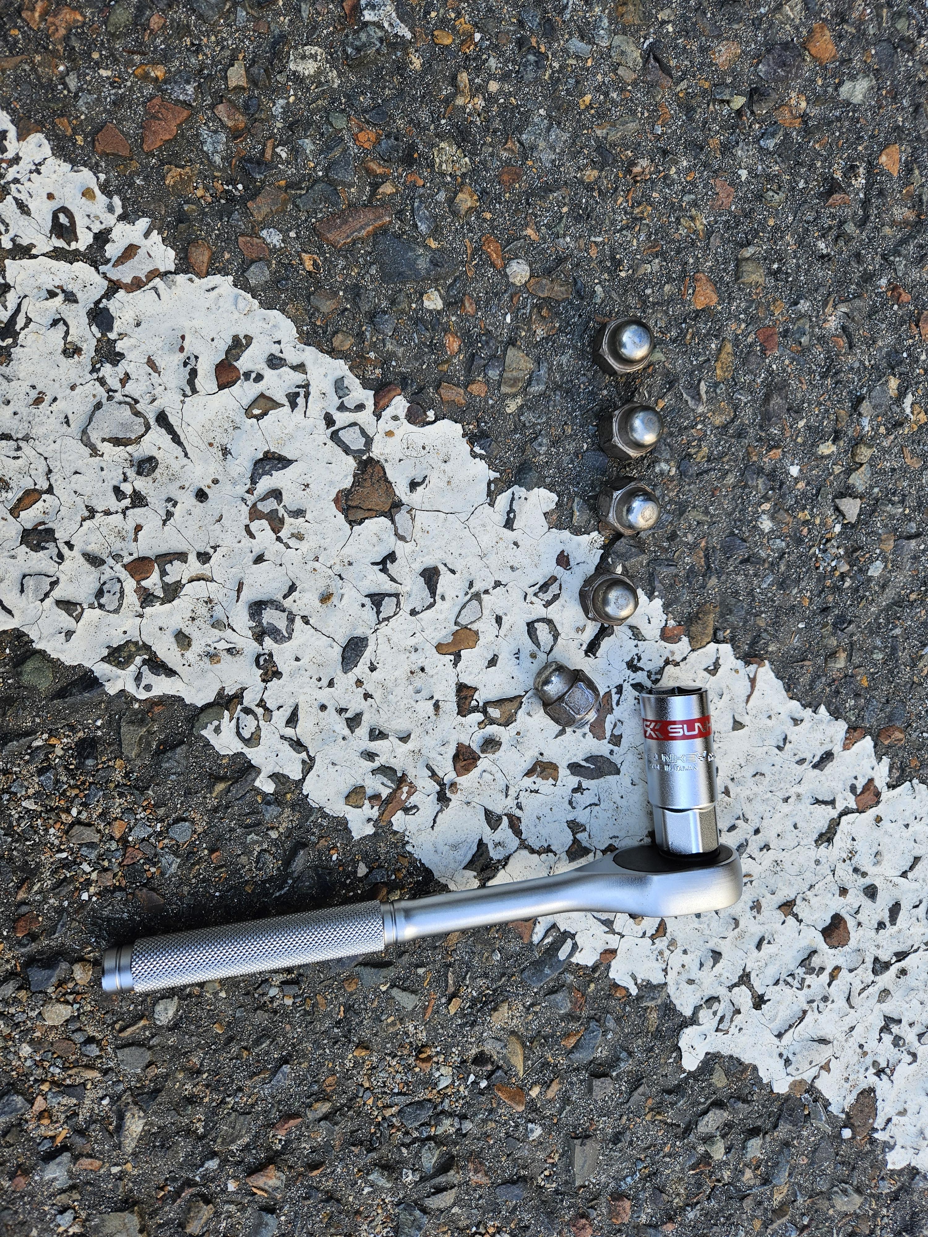 21mm 소켓을 끼운 라쳇 렌치는 과연 휠 너트를 잘 풀어 주었다.