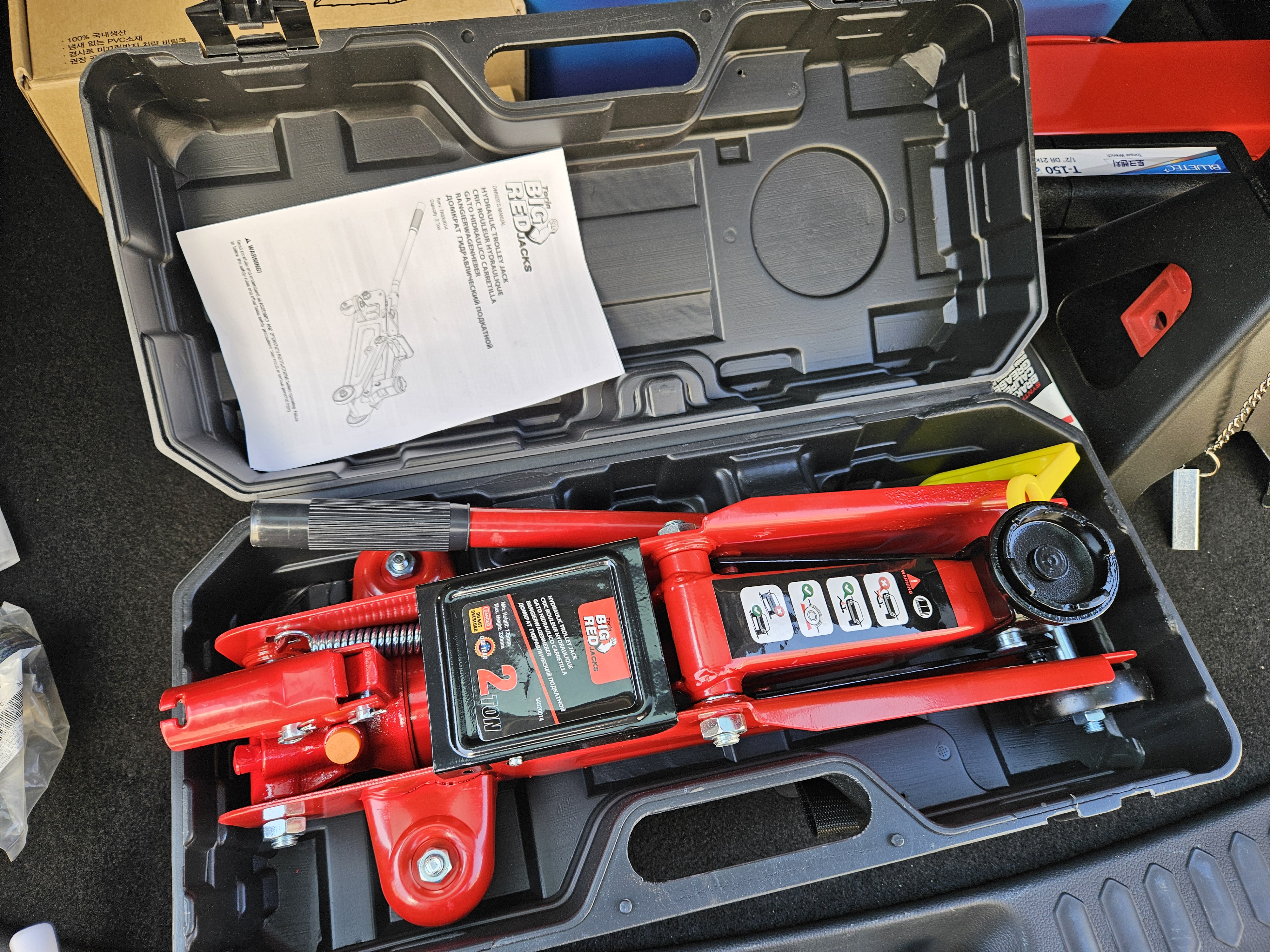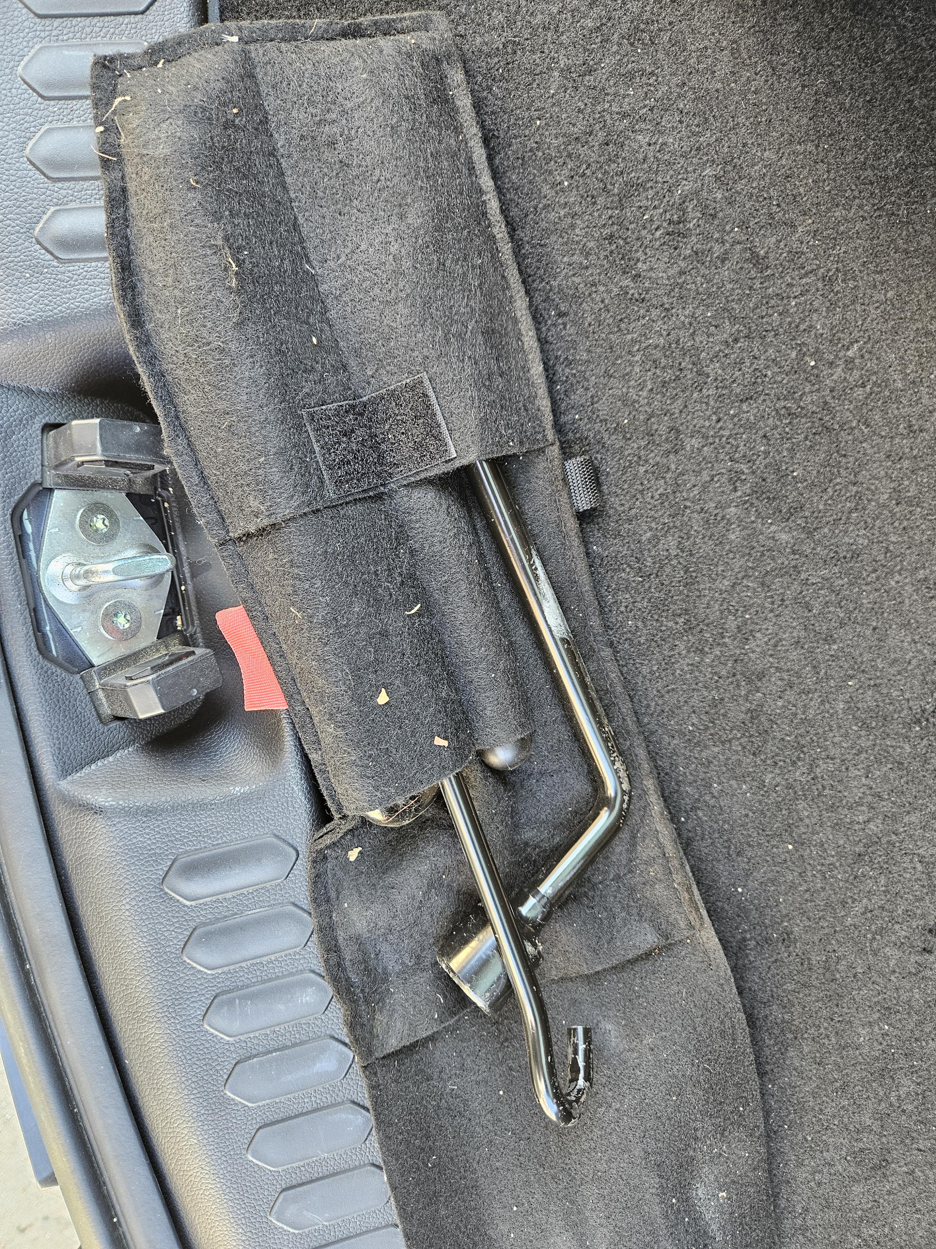 고대 유물 발굴하듯 찾아낸 트렁크 아래에 숨어 있던 OVM 잭과 도구들.