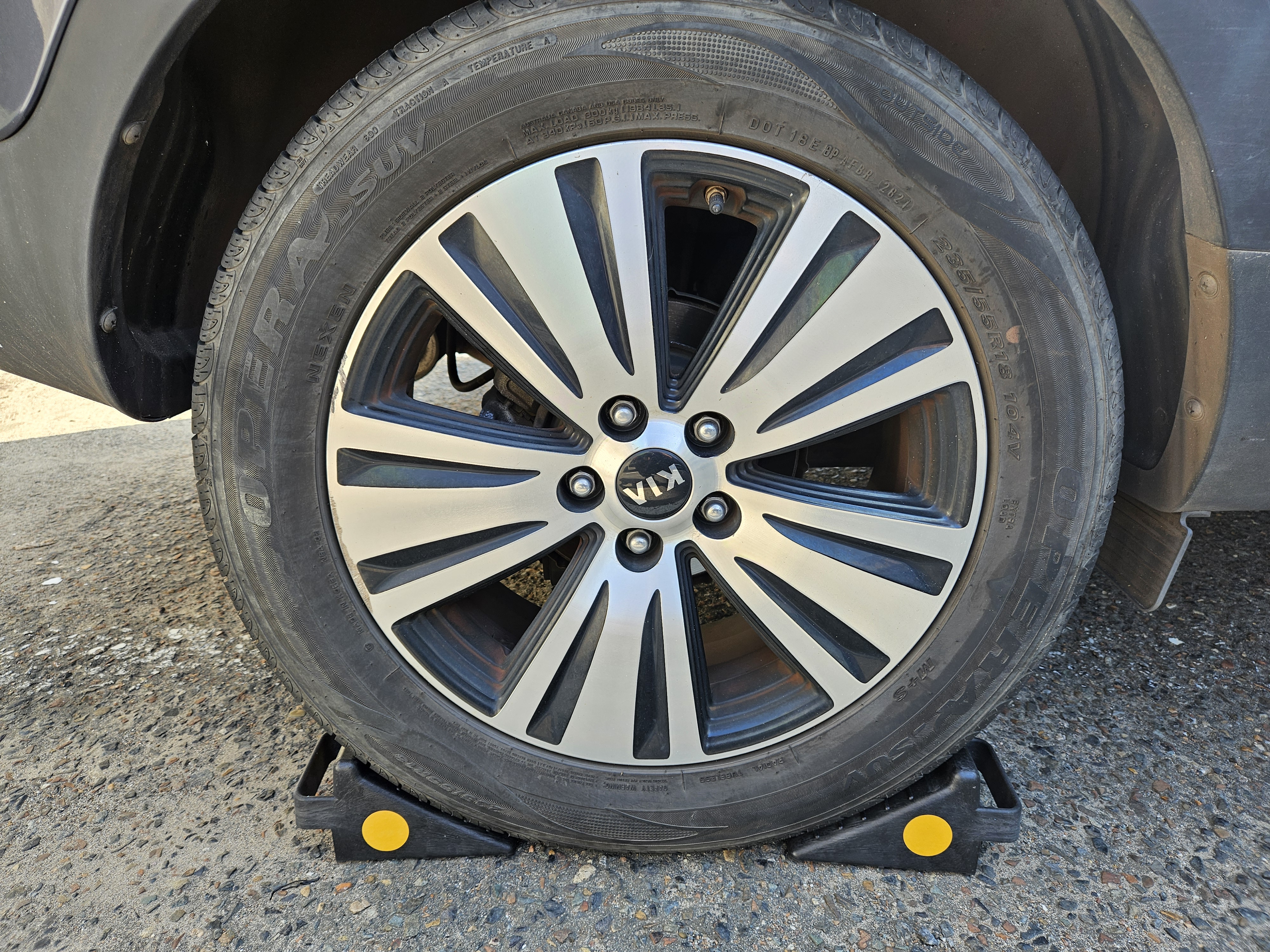 운전석을 작업할 때, 2열 우측에 있는 타이어에 고임목을 대는 식이다.