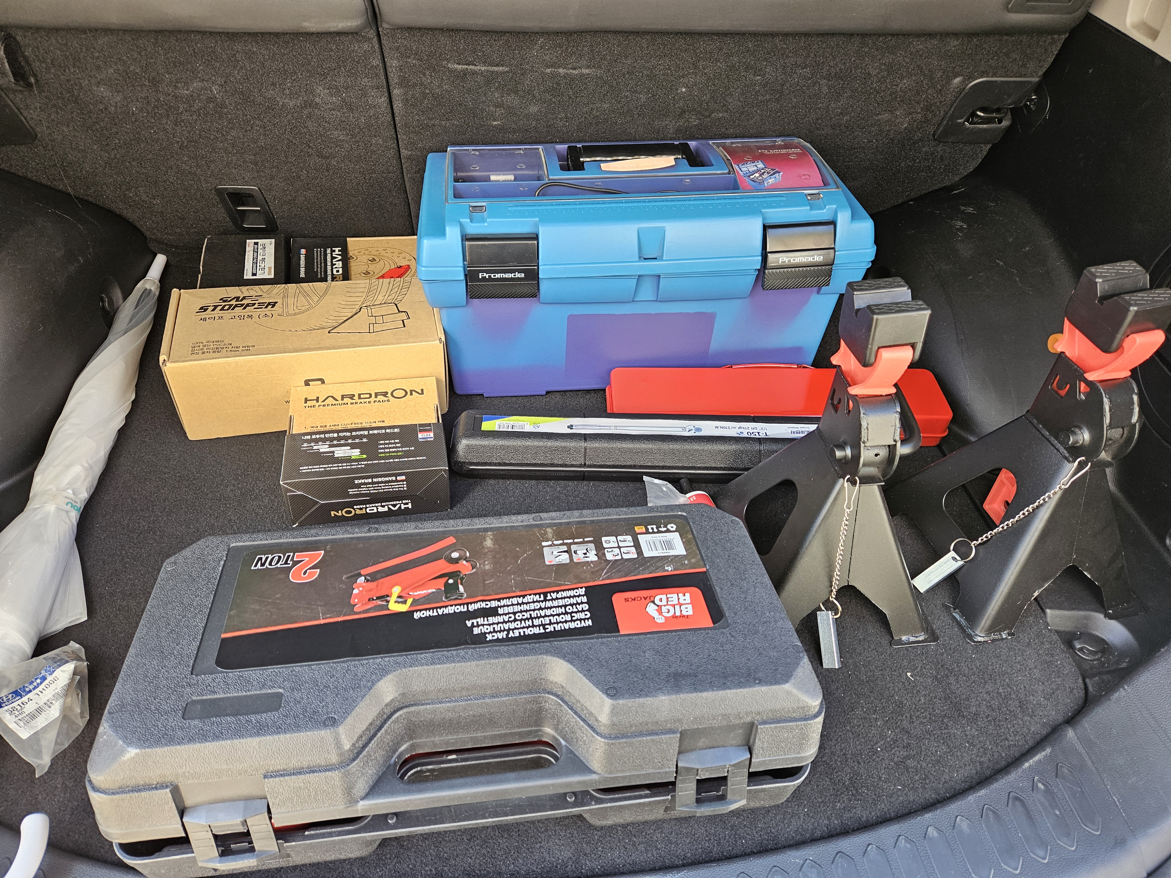 브레이크 패드 자가정비를 위해 갖가지 공구를 구매했다.