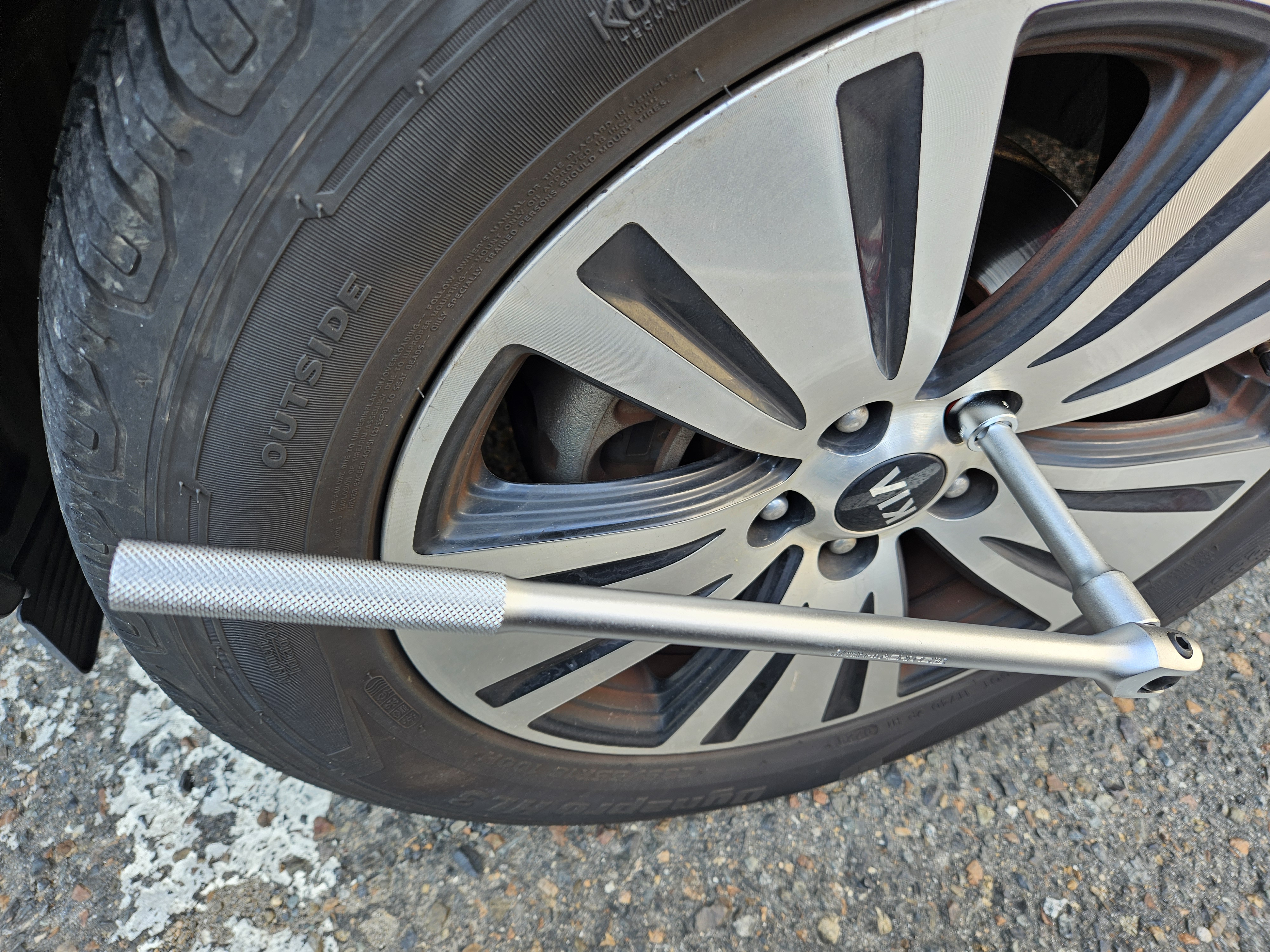 전동공구라면 차를 띄우고 나서도 휠 너트를 풀 수 있지만, 수공구는 휠 너트를 풀려고 시도할 때 차가 띄워져 있으면 타이어가 함께 돌아가 버린다.