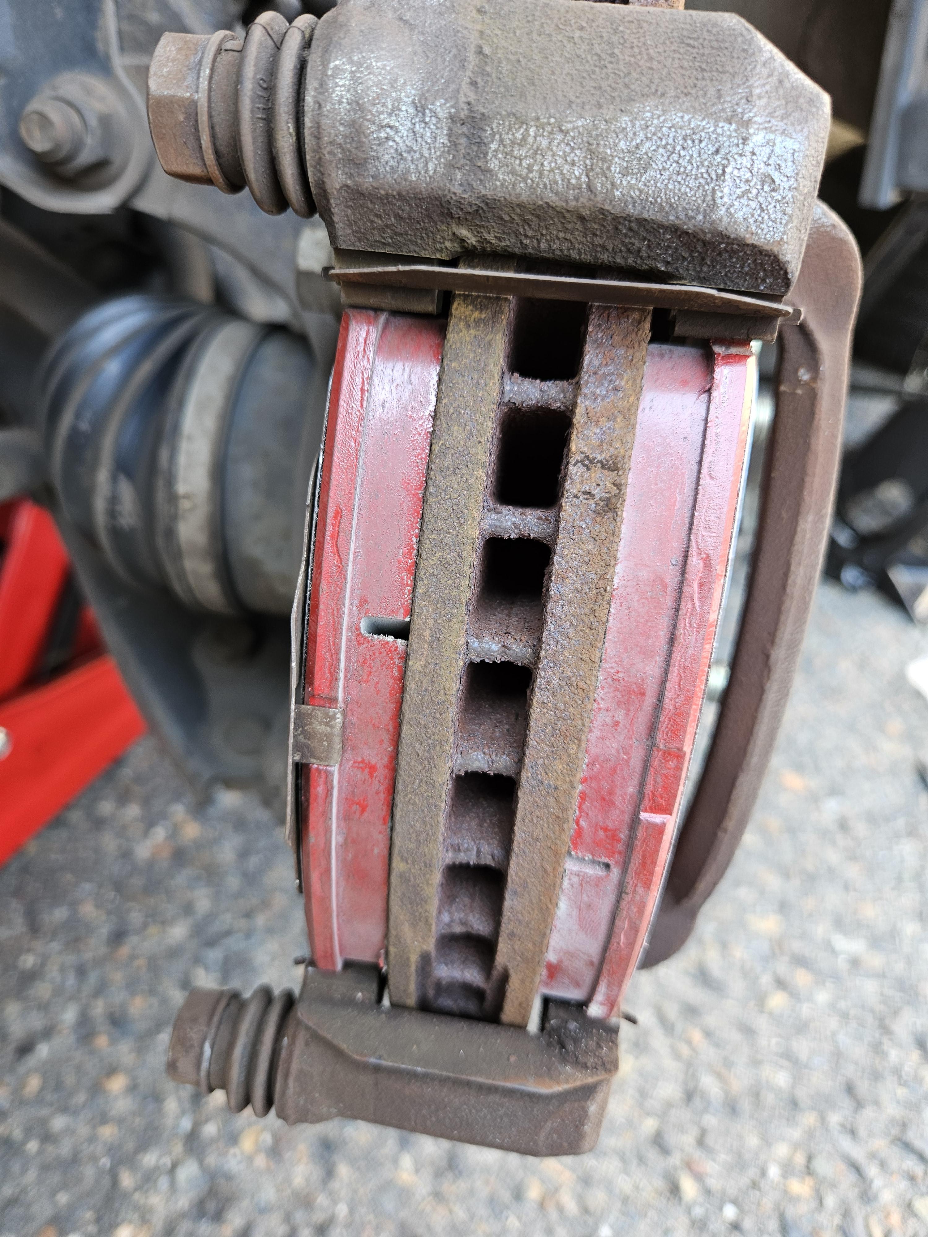 뒤쪽 브레이크 패드를 빼고 보니, 패드량이 생각보다 많이 남았다.