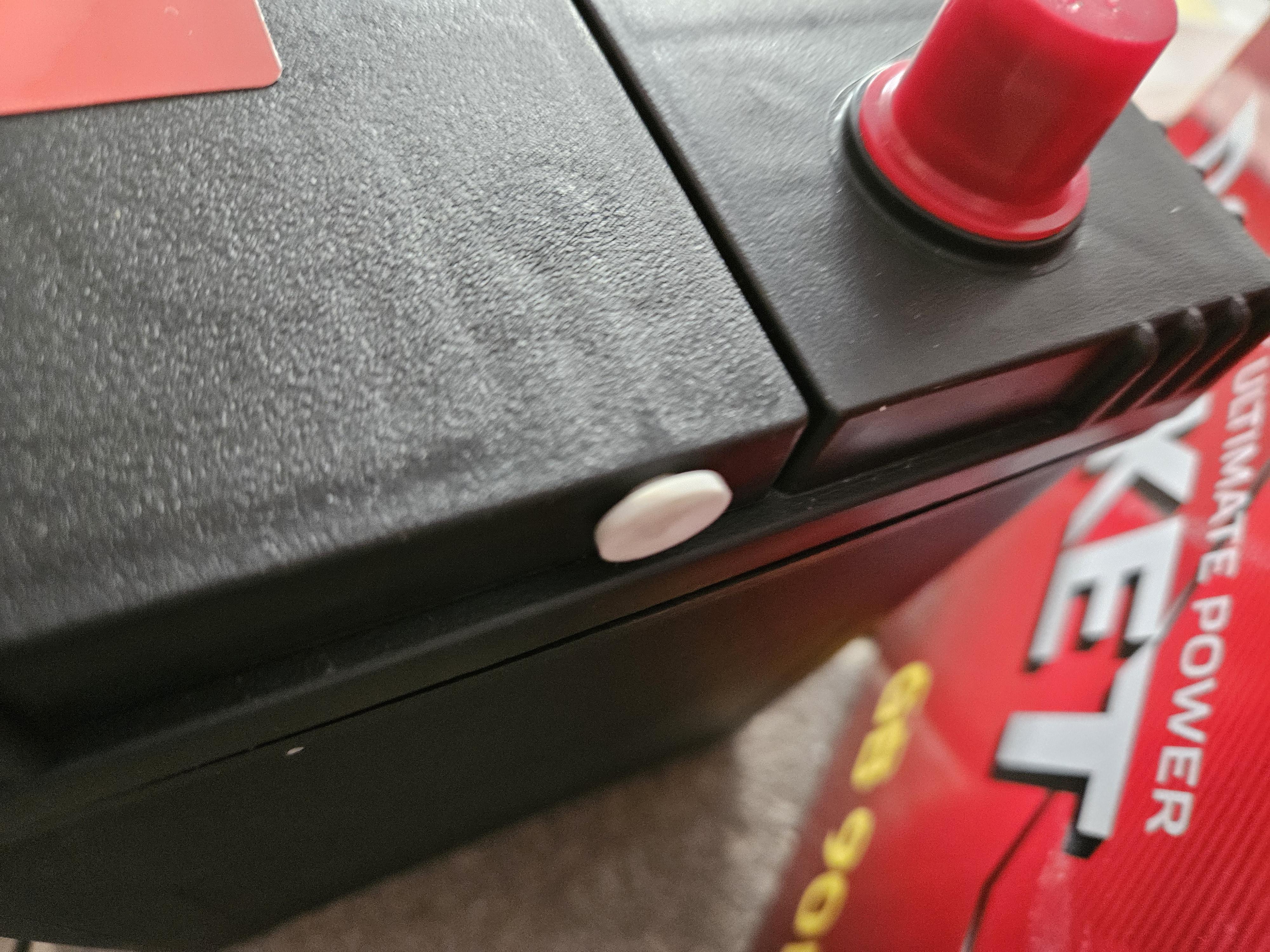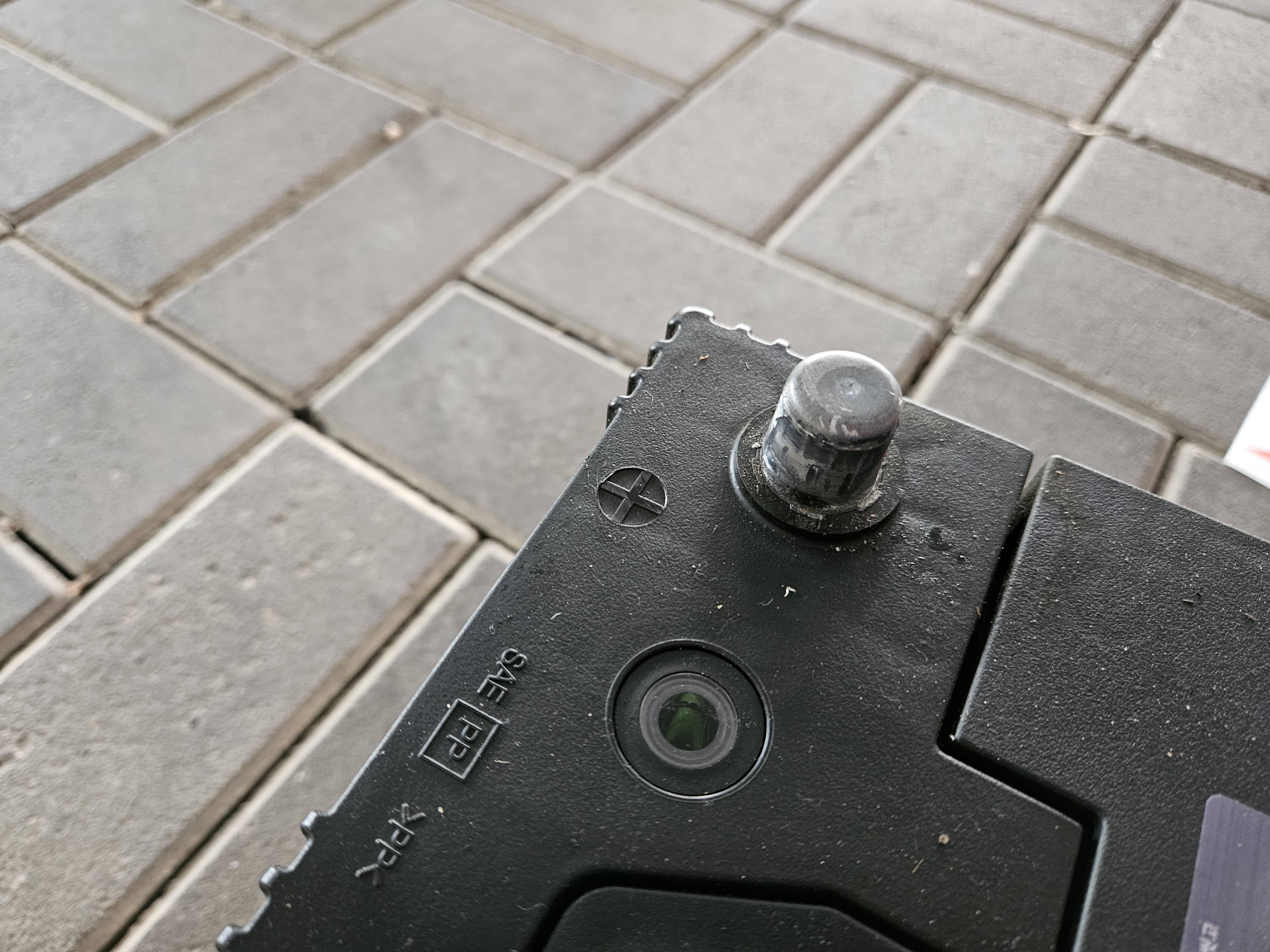 새 자동차 배터리는 위에 플러스(+), 마이너스(-) 뚜껑을 열어주고, 그리고 양쪽의 가스 배출구멍을 열어주도록 하자.